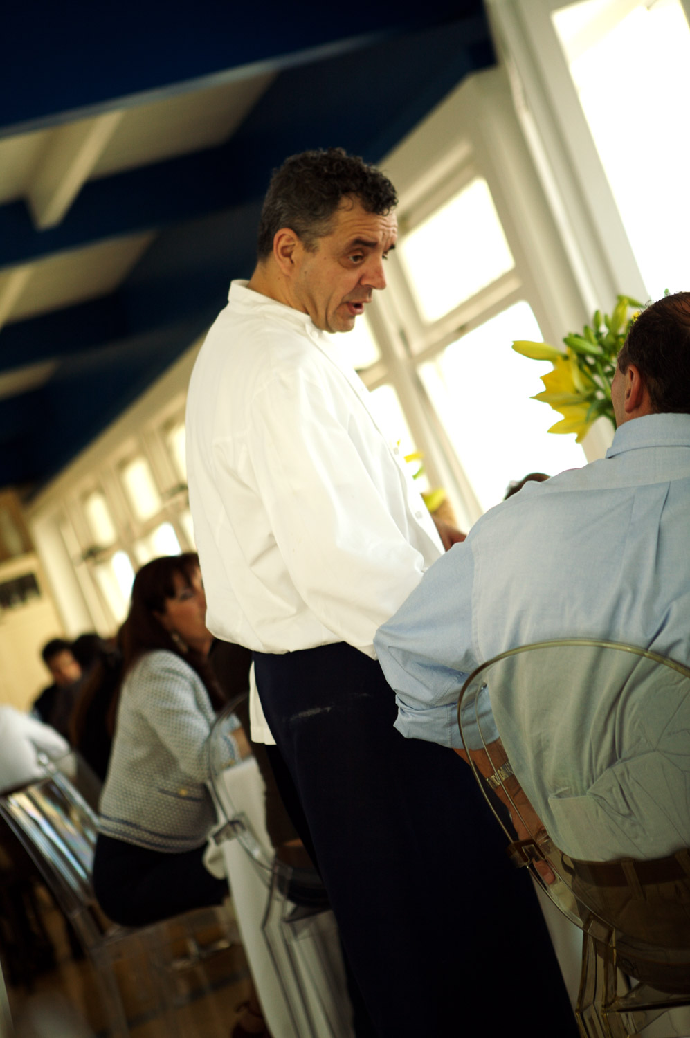 A year later I invited Mauro and his team to come to Chester (my home town) as a guest chef. Chester and  Senigallia are ‘twin towns’. He came over and cooked a ‘presentation lunch and dinner’ at the Chester Grosvenor. Afterwards I escorted him from table to table so that the diners could meet ‘the man himself’.  I acted as the translator. Most people were very complimentary. Afterwards I asked Mauro for his opinion of the event. He said to me,