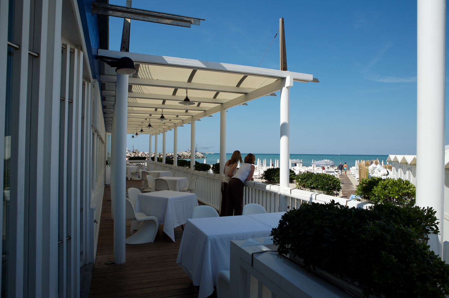 But my hosts were insistent, before leaving we must have lunch together and they had the perfect little place in mind.  That place was a ‘New England style’ building located literally on the beach.  As the French would say ‘pieds dans l’eau’. As we slammed the door behind us, and the howling wind was now at a comfortable distance I looked around at the décor of the restaurant. It was quite charming. Smart tables with brilliantly white table cloths, Philippe Starck chairs. Book cases and cook books lined the back of the room and to my right was an expansive terrace looking out onto the beach and the stormy sea beyond. The port is next door, I could just make out the fishing nets hanging in the distance. The restaurant is called ‘Uliassi’ and the chef Mauro and his sister Catia run the restaurant together – he is in the kitchen and she is ‘front of house’.  Born and brought up just a mile or two from Senigallia, they are Marchigiani through and through.