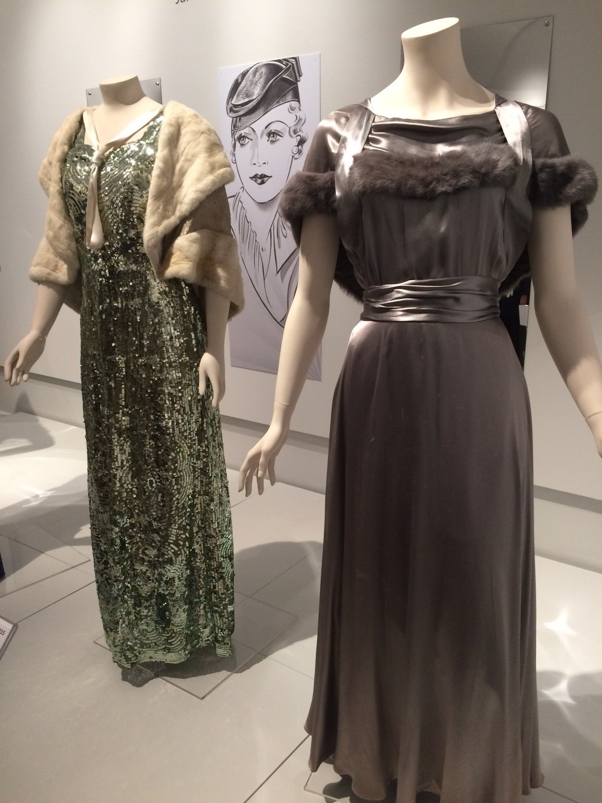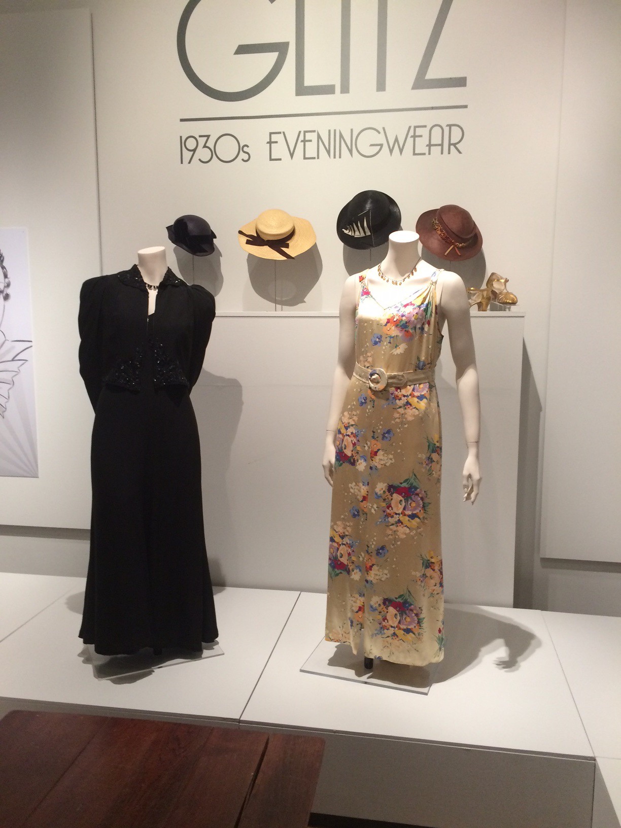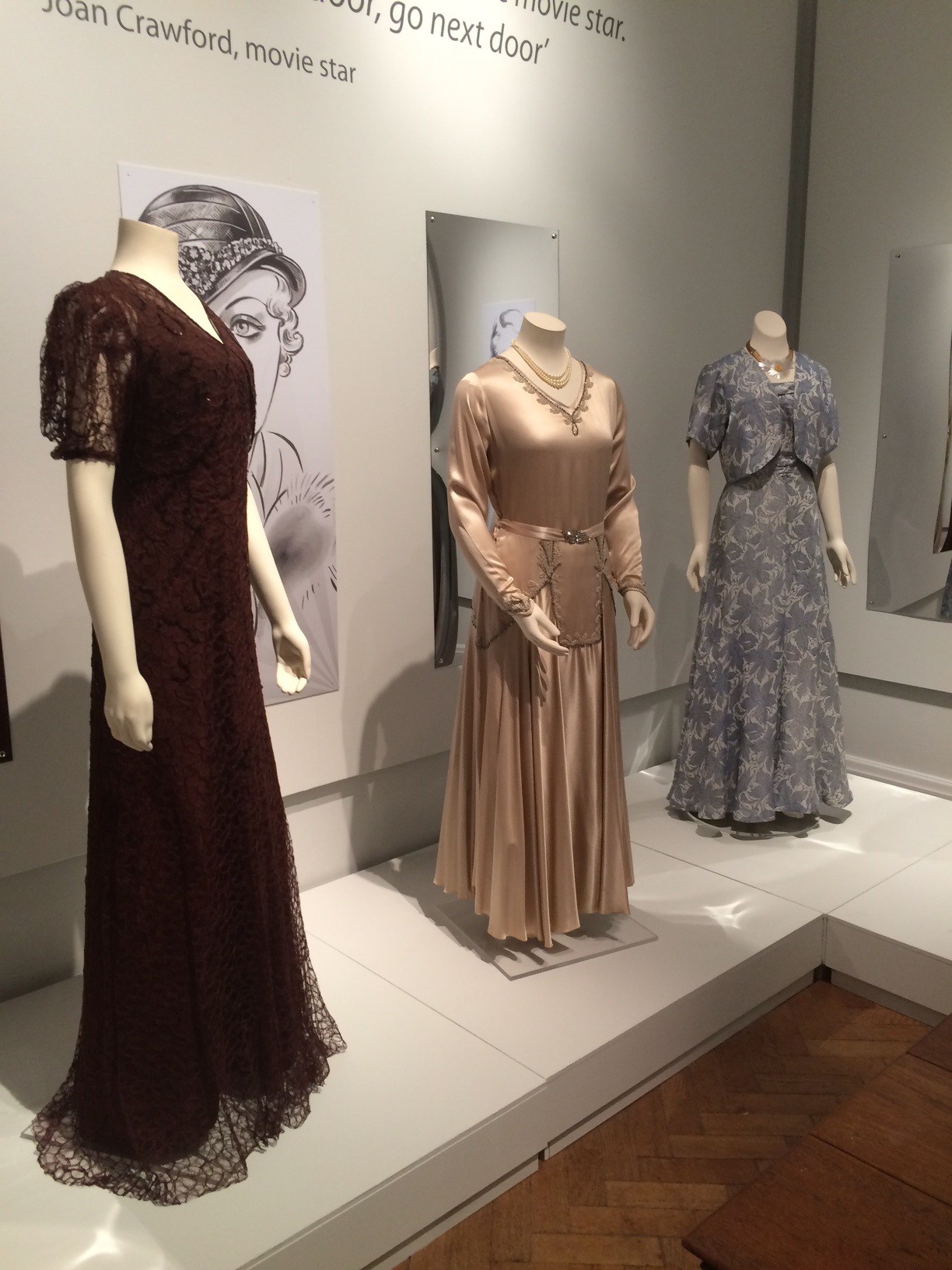 What a small world! These dresses were worn by Mrs Bech in the 1930s, later she donated them to the Liverpool Museum. She was our next door neighbour! The ‘Putting on the Glitz’ exhibition has been curated by Pauline Rushton. She explains that Hollywood-style fashion arrived in England between the wars, probably around 1935. Film stars like Joan Crawford were enormously popular. Society ladies wanted to copy the gowns worn on the silver screen. Whilst mere mortals could visit the cinema once or twice a week to watch the ‘movie stars’ of the day dressed elegantly and attending glittering parties.