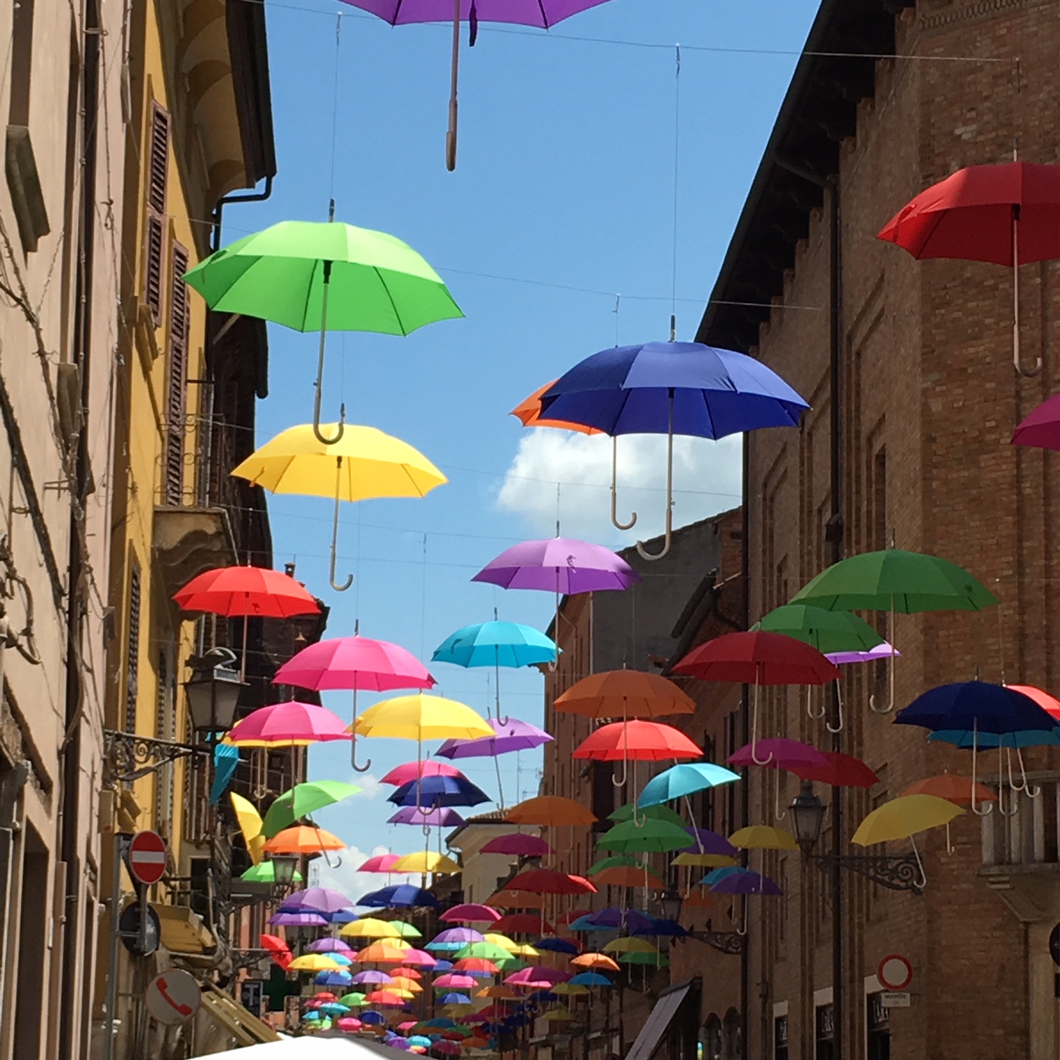Ferrara – Via Mazzini – umbrellas Posted on June 7, 2016 by Janet Simmonds Reading time less than 1 minute