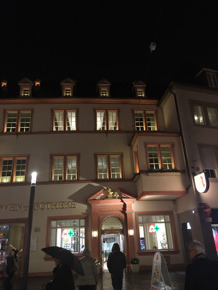 We crossed the Kaiser Wilhelm Bridge, seeing the swollen waters below swirling and rushing on their relentless journey to the sea. An island in the middle of the river was completely submerged, just the tops of a handful of trees visible. Large river cruisers, popular for boat rides in the summer months, were moored for the winter on the river bank. Just five minutes to our hotel now, passing the spectacular Porta Nigra, the old Roman entrance to the city. I’m reminded that Trier was an important Roman town. The locals say it’s the oldest town in Germany.