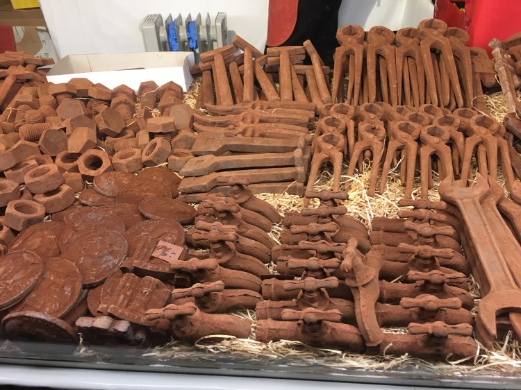 The city of Trier is fully decorated for Christmas and the Christmas markets are in full swing. Numerous timber chalets fill the square, each decorated with lights, decorations and seasonal gifts and snacks. These stalls sell jewellery, sparkling crystals, hats, scarves, cuckoo clock. I buy a small wooden Christmas tree, painted in red, green and silver. A stall that catches my eye is selling delicious chocolate fashioned in the shape of traditional tools, hammers, spanners and pliers. I can’t resist buying a selection for my dad, they come in a small wooden workmen’s tool box. They are whimsical and beautiful – works of art!