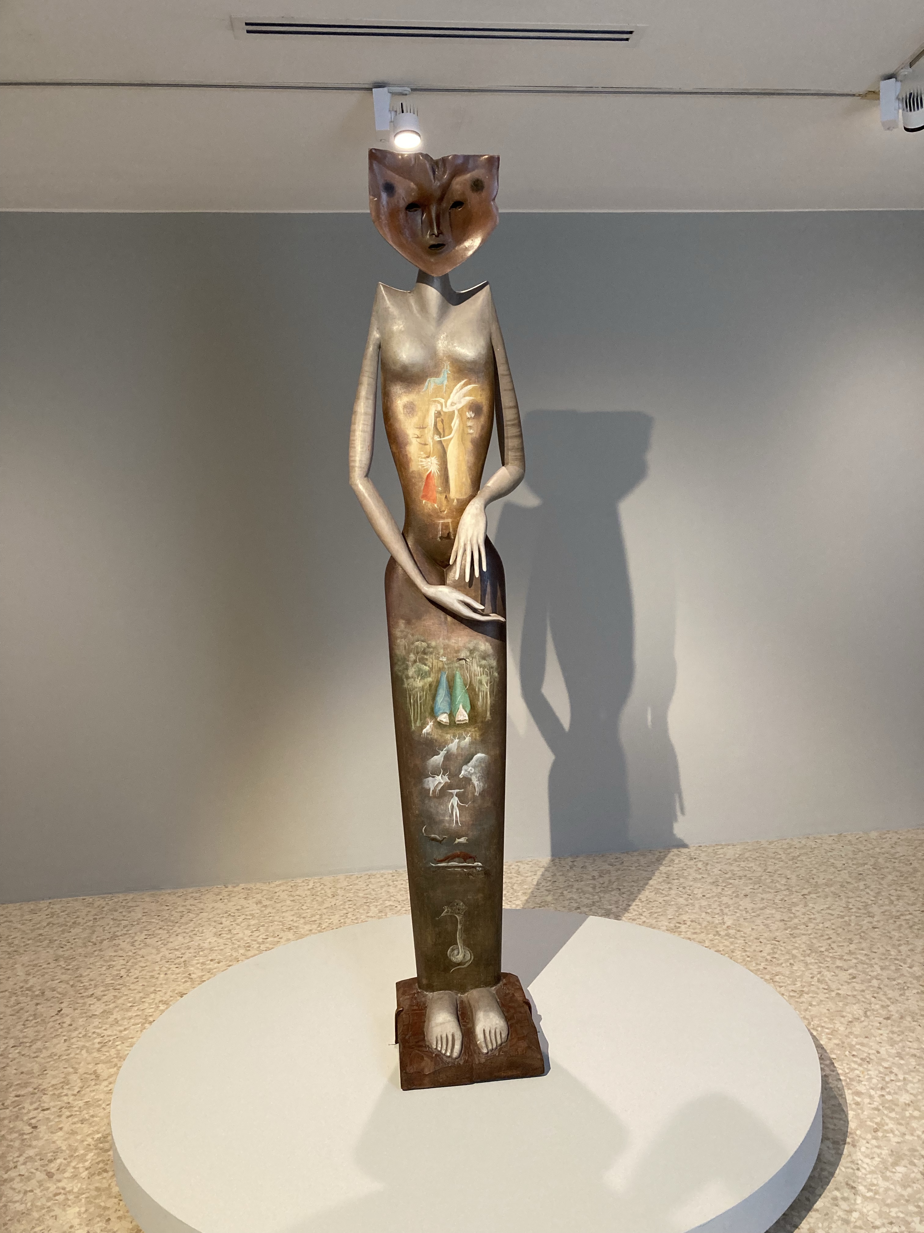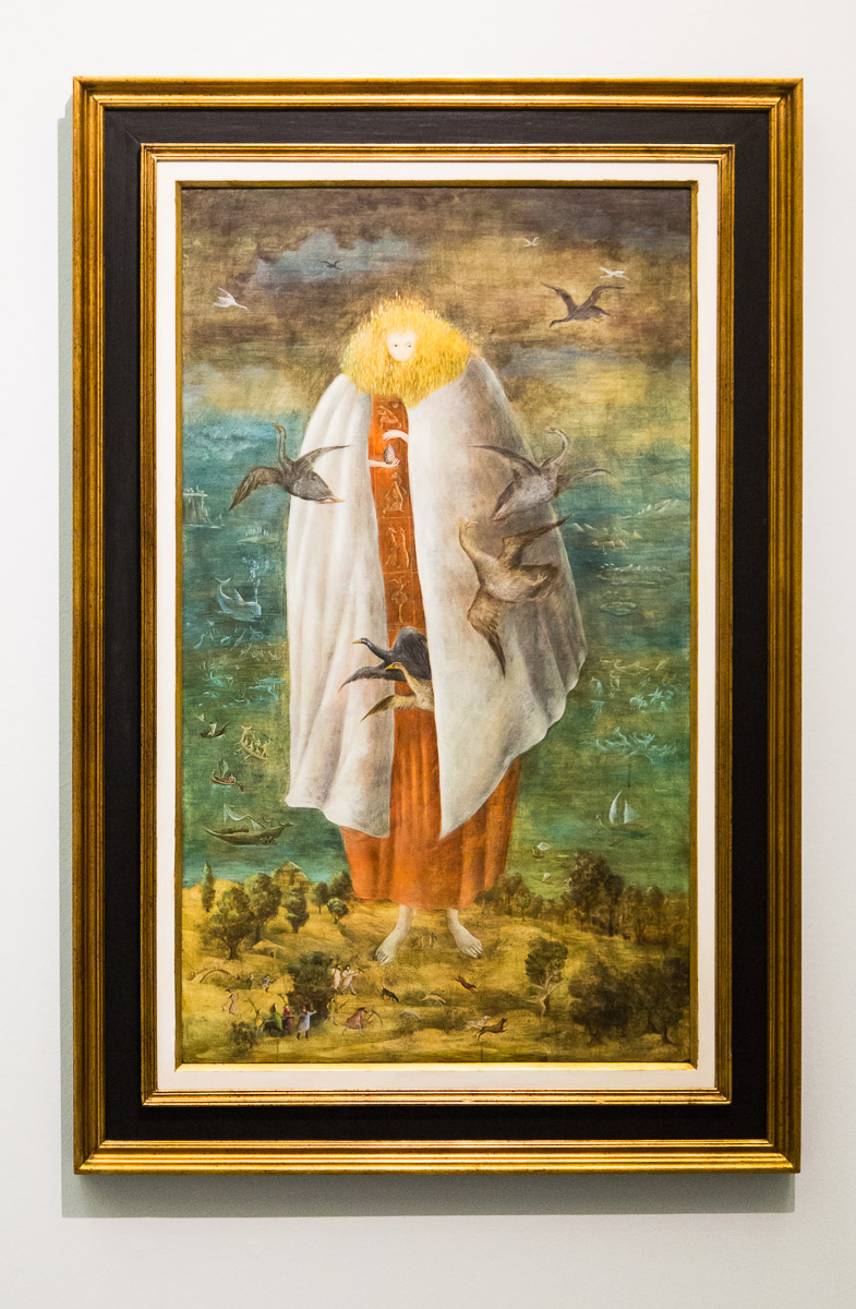 Leonora detested the ‘over-intellectualisation’ of her work. She believed that the interpretation of her art was in the eyes and minds of the viewer[4].After spending many hours at the exhibition over several months I was inclined to agree with her. However I was struck by the female fertility figure (above) possibly inspired by Robert Graves White Goddess. I came away with the impression that Leonora Carrington was a complicated, talented and passionate thinker and artist who found her true geographical home in Mexico. I would have loved to have met this woman and spent a few days listening to her and to her view of the world. During a working career that lasted more than seventy years Leonora painted, sculpted, wrote poetry, fiction, and designed costumes for Shakespearean productions. She was a dedicated artist; authentic, brave and adventurous.