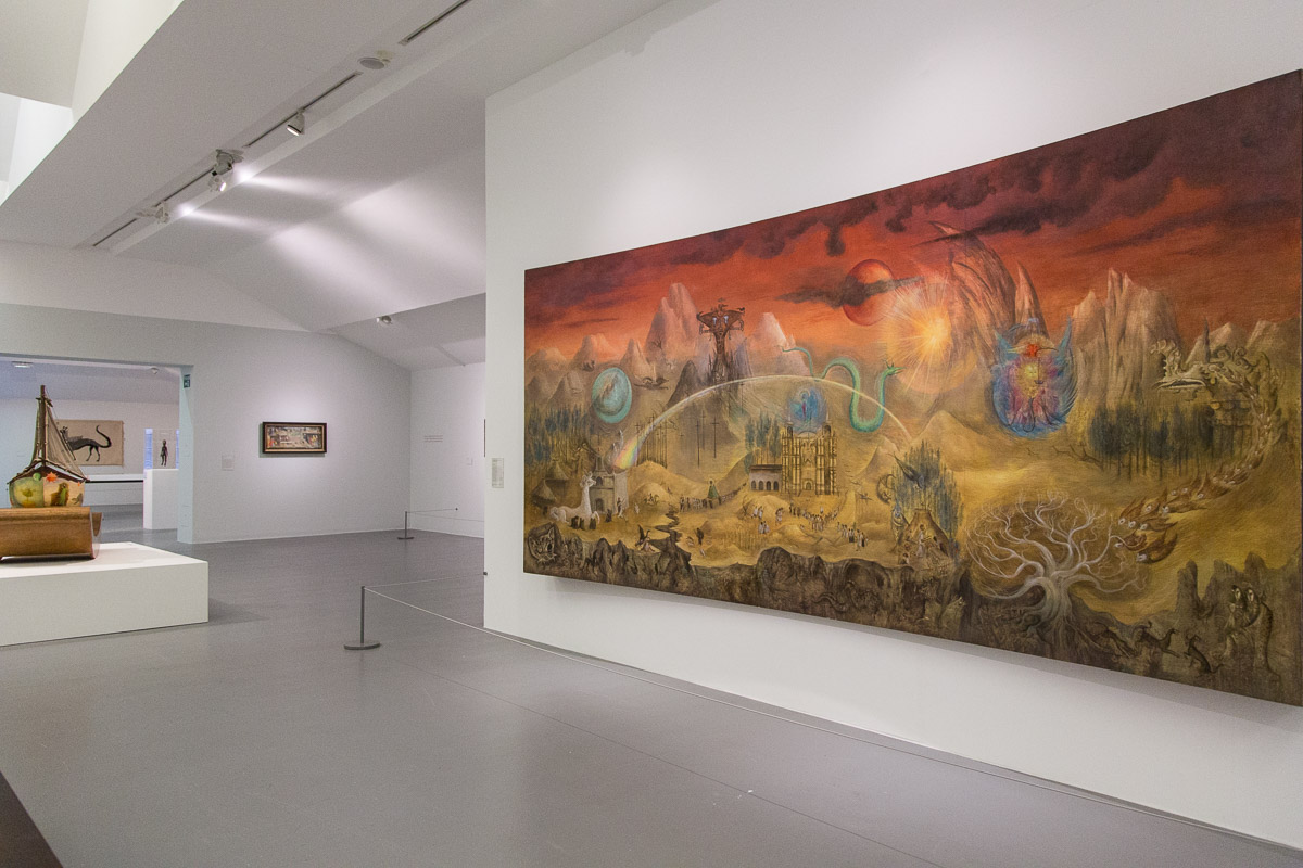 She was a multi-talented artist, writer, poet, costume designer and set designer – a veritable polymath. She wrote novels, short stories and poetry in English, French and Spanish. Ironically she is still better known in Mexico, where she is considered to be one of their finest modern artists. In 2015 the Tate Liverpool put on an exhibition, a truly exceptional selection of Leonora’s work. Drawings and sketches from the 1930s, paintings from the 40s, textiles from the 50s and even a film from the 70s where she assisted with costume and set design. The highlight of the exhibition was a huge mural commissioned by Mexico’s National Museum of Anthropology in 1964. It was the first time the enormous canvas had left Mexico.
