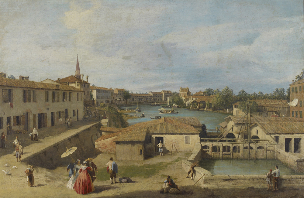 Canaletto – Dolo View and lock with Burchiello in background – Ashmolean Museum, Oxford