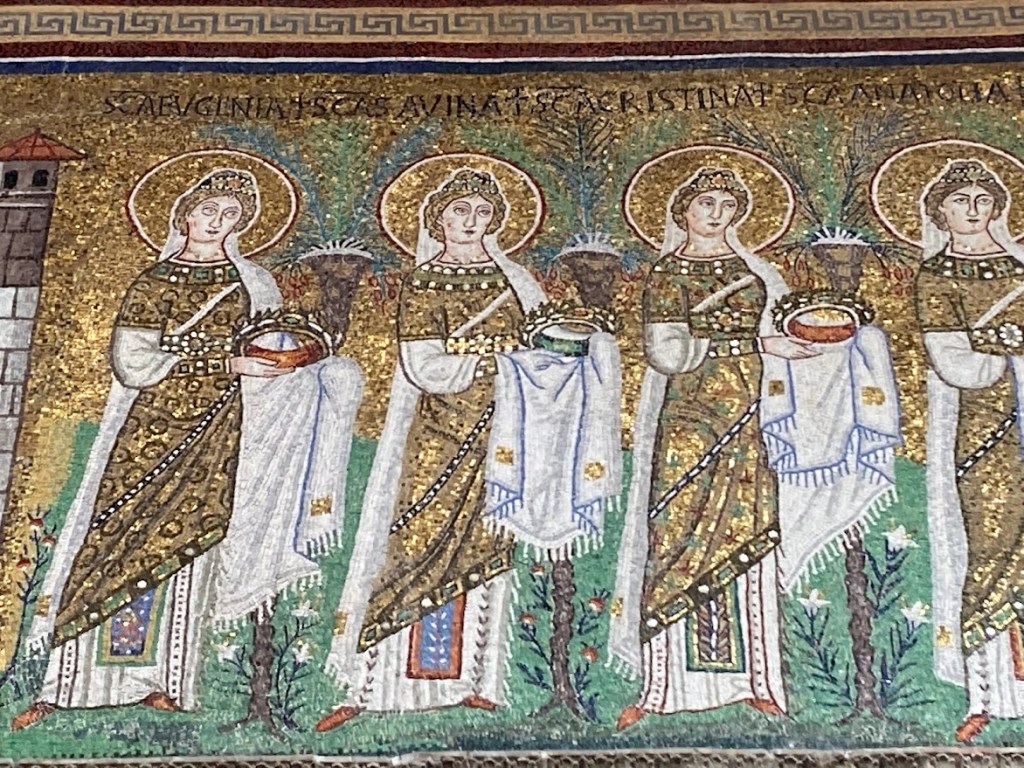THE MARTYRDOM OF LUCY – As often happens with saints and martyrs, their story grows and is embellished over time. Lucy’s story was no exception. After her death her remains were placed in the catacombs of Siracusa. However the number of visitors was so great that the relics had to be moved. By the beginning of the sixth century Lucy’s fame was so great that a huge church (a basilica) was built for her in Siracusa. Around the same time, she was sufficiently well-known to feature in the special prayers of Pope Gregory. When Siracusa was invaded by the Saracens in the eighth century her body was moved again, firstly to Abruzzo and then later to Constantinople. Here the Venetians enter the story. In 1204, during the Fourth Crusade, Doge Enrico Dandolo of Venice decided to transport the relics of St Lucy back to Italy, specifically Venice. They were placed in the Church of San Giorgio Maggiore, on an island just across the lagoon from St Mark’s Basilica. However, the island was too small for the great number of worshippers and visitors that wanted to pay their respects to this admirable woman. In 1279, on St Lucy’s Day, a tragedy occurred when several pilgrims drowned in the lagoon, after their boat capsized.  After this accident the Venetian Senate decided that the relics of St Lucy should be moved to the centre of Venice.  So, Lucy’s remains were moved once again – and laid to rest in a church built especially for her in Cannaregio, adjacent to the Grand Canal.