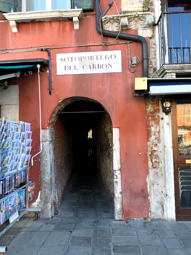 SOTOPORTEGO – An archway or covered alley way leading from a square into another narrow walk way (these walk ways are known as ‘calle’ in Venetian). The ‘sotoportego’ literally means under the door frame or under the porch. There are numerous ‘sotoportego’ archways in Venice linking one area with another. They were a necessity in a city where buildings covered every inch of the habitable area. A ‘sotoportego’ provided access to people and hand carts, even if there was a palace above and to both sides of the alley way. The ‘sotoportego’ often has a colourful names that helps us to imagine what happened here in days gone by. For example ‘Sotoportego del Carbon’ which translates to ‘Archway of the Coal’. Another favourite is ‘Sotoportego dei Preti’ which is Archway of the Priests.