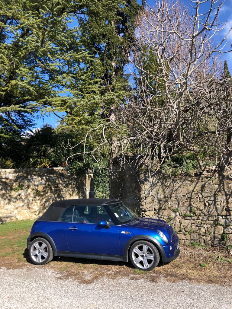 As I loaded the boxes into the boot of the Mini I felt pleased with my purchases and I inspected the buildings around me. The church to my right and the chained wrought iron gates to my left, revealing a courtyard within. Still the village was empty, not a sign of life. The wine man had disappeared back inside his house. The clock tower of the church struck 12 and a ‘for sale’ sign flapped from an upstairs window. The combination of emptiness and silence was growing a little heavy now – time to move on and head towards the coast. I hopped in the Mini and off I went.