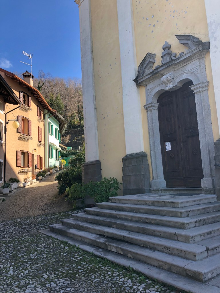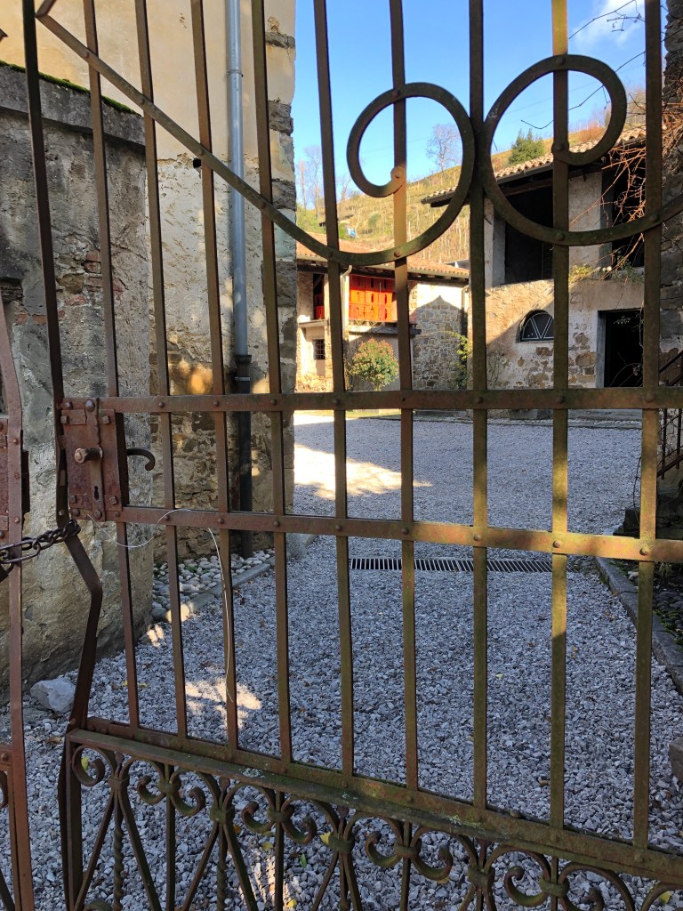 Clearly they weren’t expecting visitors on a sunny day in January when I drove into the village of Brazzano, just about 4 kms from the Slovenia border. The town was deserted, there was not a breath of life in the air. Not even an arthritic old dog occupied the street. I didn’t want to park the car until I’d actually seen someone to talk to, so I drove past the church and along a single track lane, that followed the shoulder of the hillside. It was bordered by vineyards on one side and a massive, dilapidated stone wall on the other. There was still no sign of life. To my right the imposing stone wall continued, I was curious to know what was on the other side. A huge castle perhaps or a vast country house?