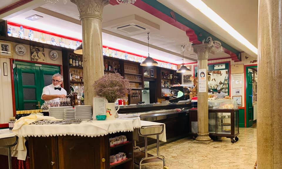 DA ROMANO, BURANO – I’ve been meaning to write about the unique, family-run trattoria of ‘Da Romano’ for months and months, perhaps even years. Somehow I just never got round to it. Then yesterday I received some very sad news, La Signora Linda, who has worked in the restaurant every day for the last sixty years, and was the head of the family, had passed away. I felt enormously sad and a profound wave of melancholy flooded over me. This smiling lady, wearing her pale blue and white overall was a ubiquitous presence in the restaurant, always pleasant, always welcoming and always so humble. The Barbaro family have run a restaurant on the island of Burano for generations. They started off with a general store and then started running a small restaurant. In 1947 they moved into the impressive building on the main street (formerly a lace-making workshop) and they have been there ever since. Romano Barbaro was a great art lover, he encouraged artists to visit Burano and to sketch or paint for the restaurant. Today the walls are covered with paintings, sketches and cartoons created by diners and visitors over the years. When Romano died his son Orazio took over, and he and his lovely, young wife Signora Linda continued the family tradition of welcoming locals, Venetians and overseas visitors. But ‘Da Romano’ was never just a restaurant, it was and still is, a focus for island life and a meeting point. The Italians call it ‘un punto di riferimento’ quite literally a place worth noticing. On any given day a casual visitor will find a couple of local men standing at the bar enjoying a glass of wine or a coffee, probably discussing the next rowing regatta and how the mighty rowers of Burano will fare against the rowers of Murano, Giudecca or Lido. Meanwhile family groups, couples and tourists occupy tables throughout the spacious restaurant.