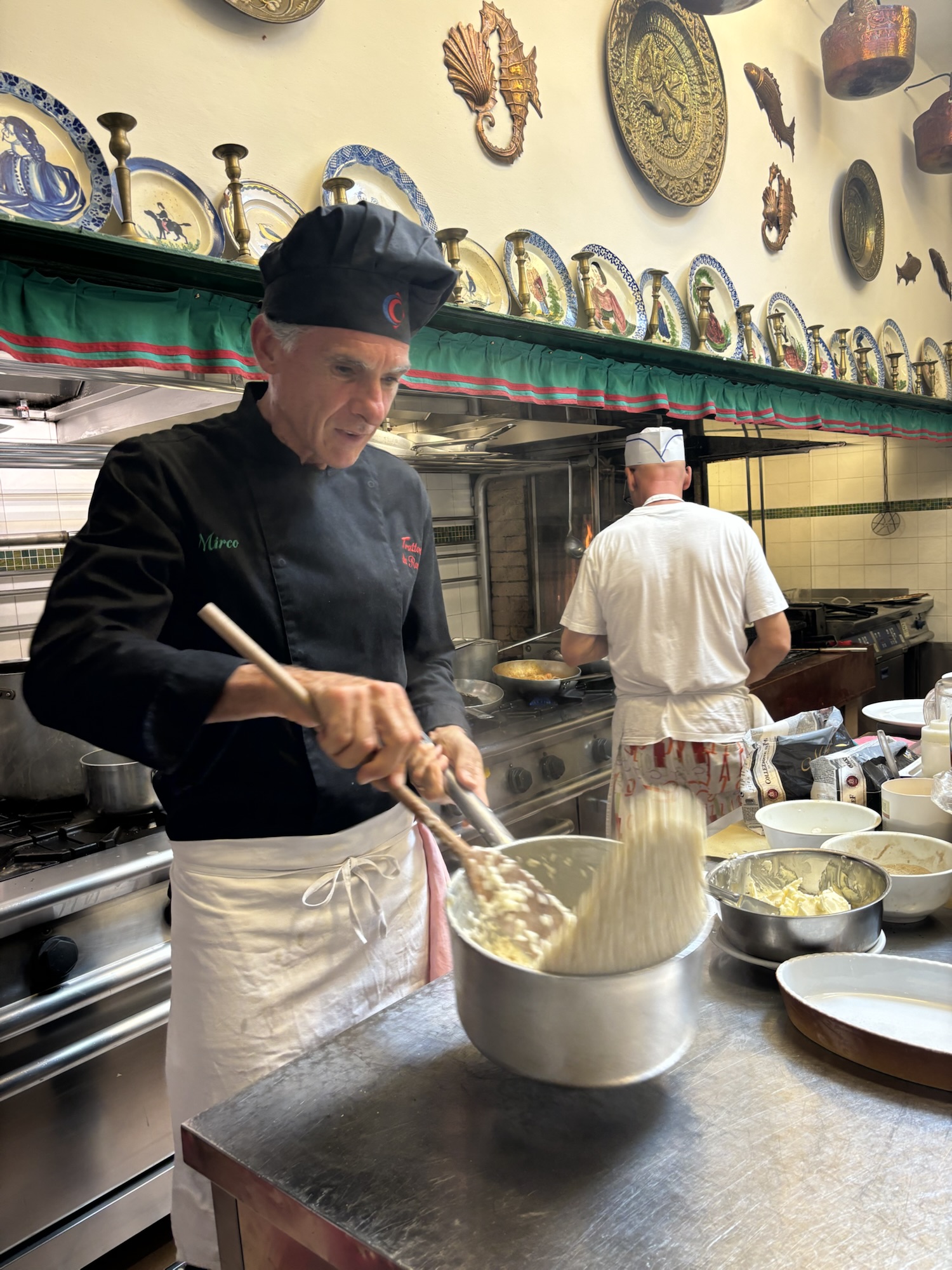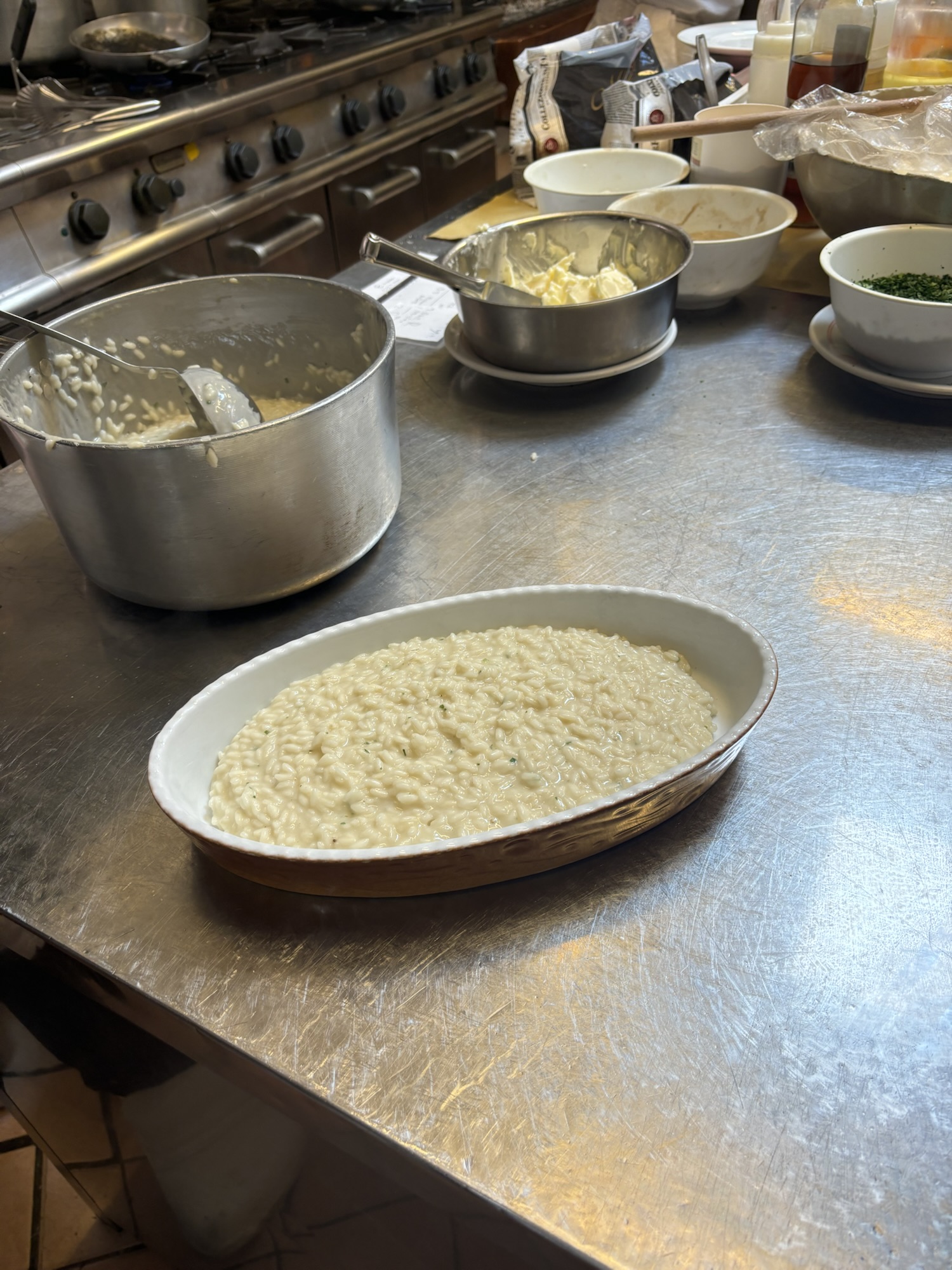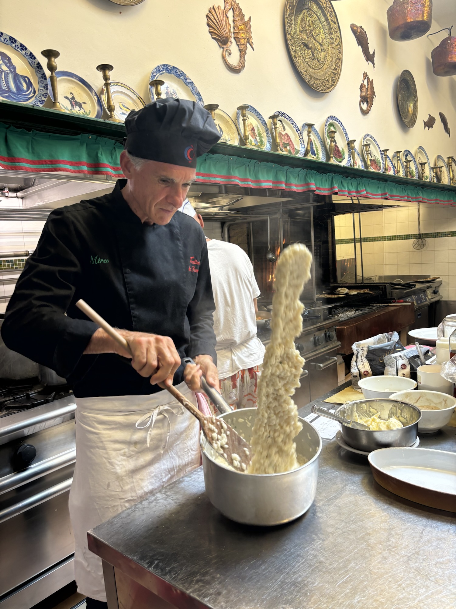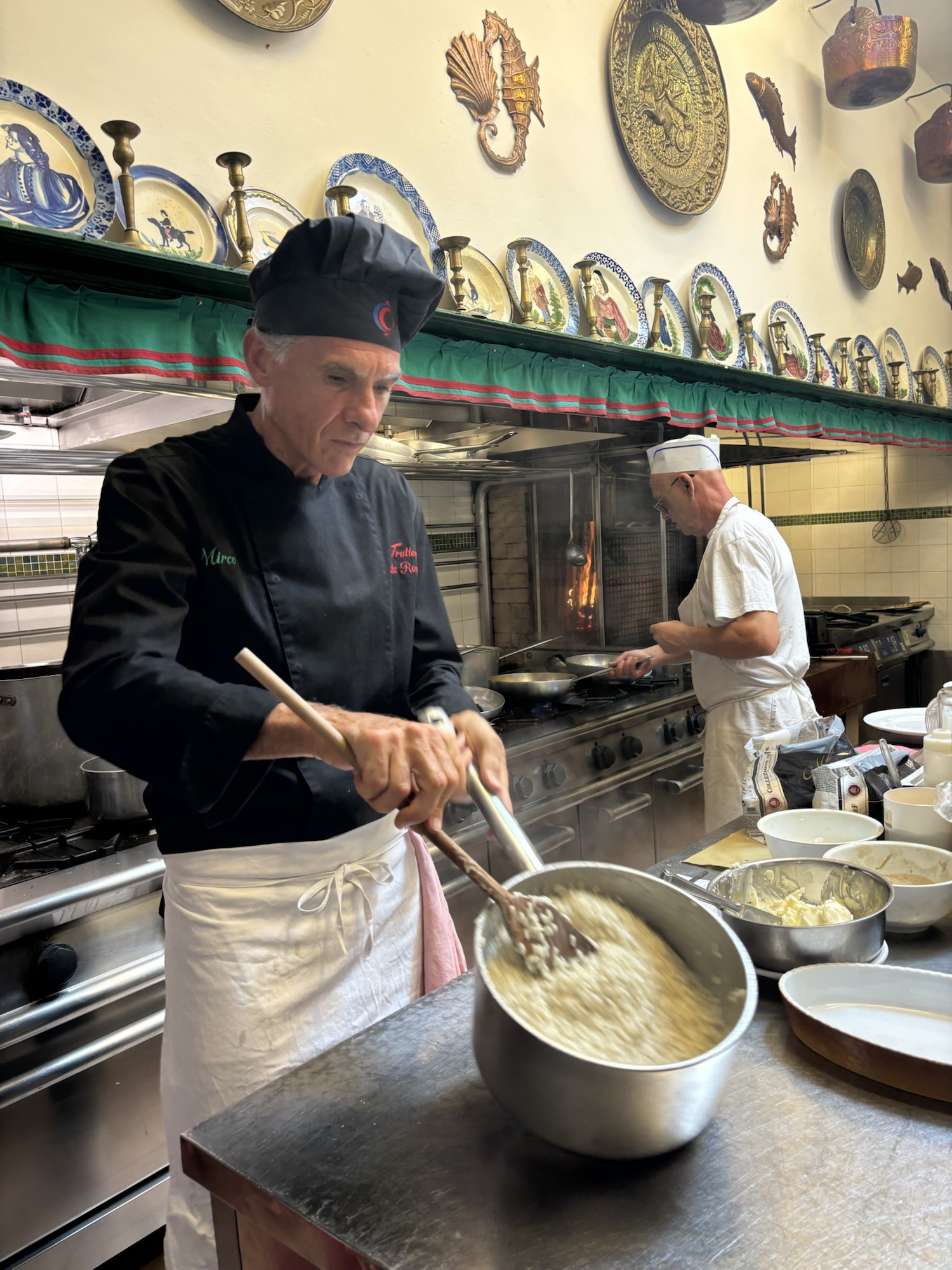 Risotto making is an art – here the expertise of Mirco in the Da Romano kitchen creates the perfect risotto