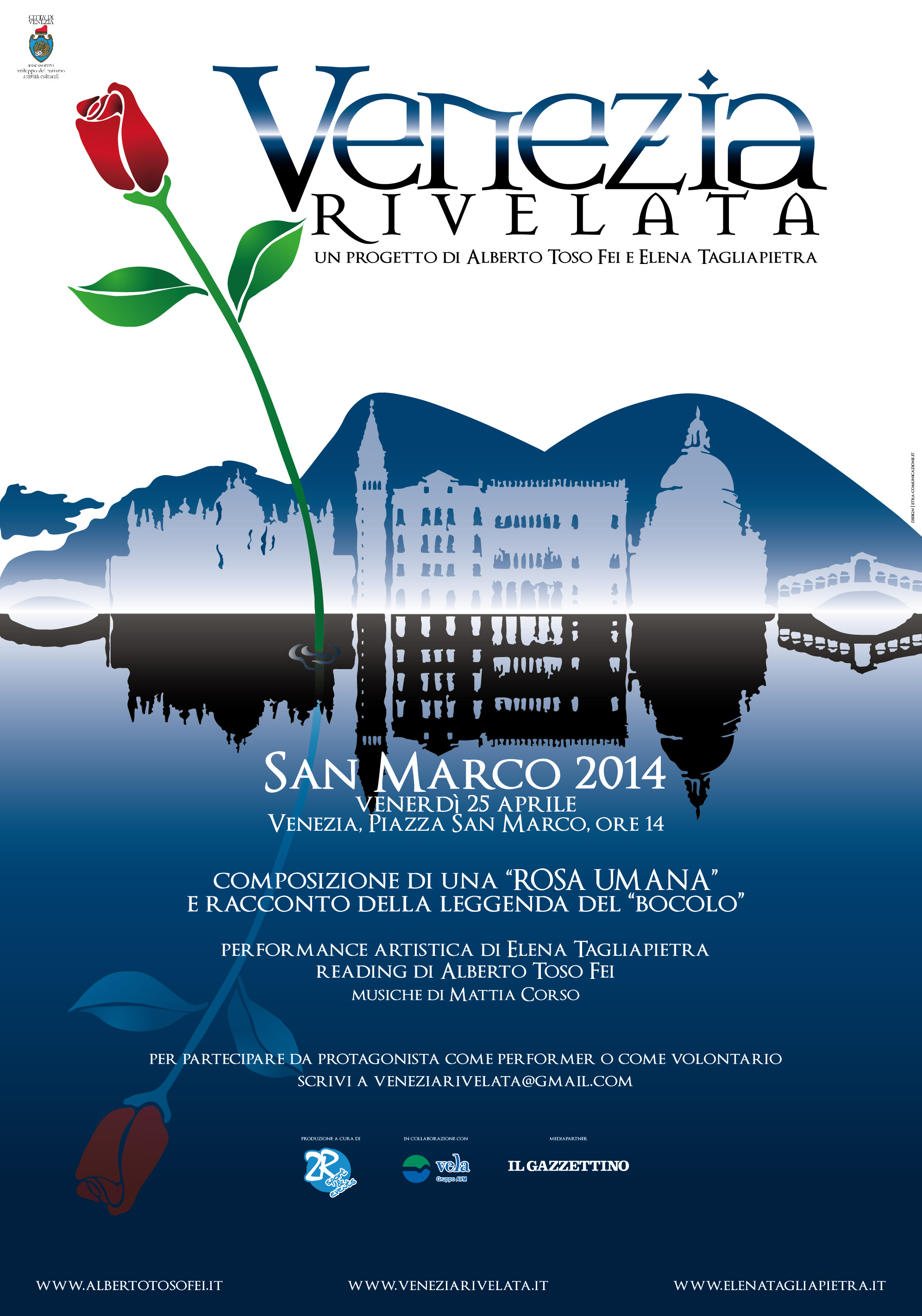 Il 25 aprile 2014 è stata realizzata in piazza San Marco a Venezia una performance artistica collettiva con un migliaio di partecipanti che hanno formato un enorme disegno di un bocciolo di rosa rossa, fotografato dalla sommità del campanile. L’idea e la realizzazione è stata dell’artista veneziana Elena Tagliapietra, che la ha denominata ‘Una Rosa per Venezia’.