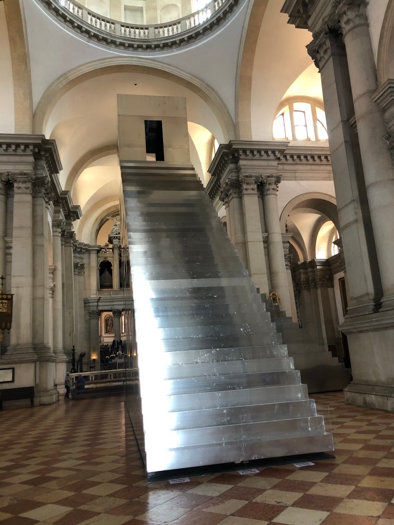 The Benedictines as an order have always had a great respect and love of art – whenever there’s an art event in Venice, the monks graciously permit temporary exhibitions in San Giorgio. Two years ago Sean Scully, an Irish artist created the colourful Jacob’s Ladder – a multi coloured ziggarat climbing high into this lofty space in the heart of San Giorgio.