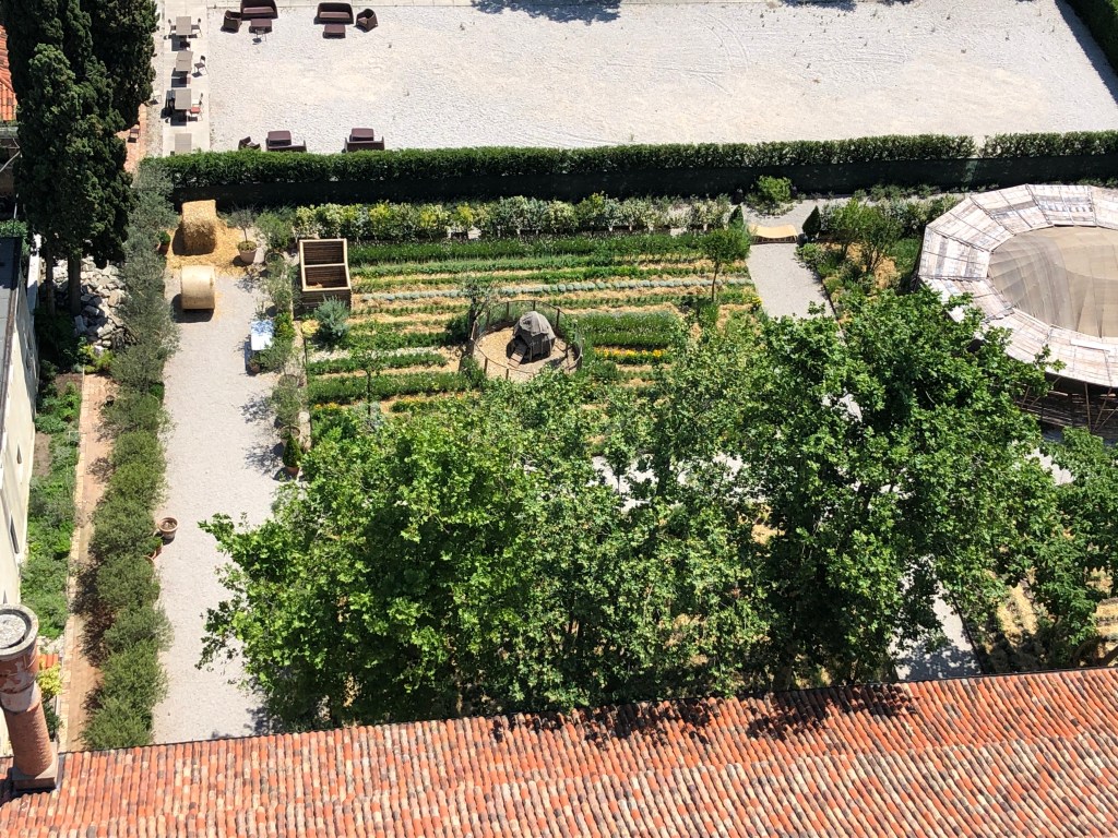 SAN GIORGIO MAGGIORE – The island was gifted to the Benedictine Monks by the Venetians in the 10th century. At the time the area was salt marsh and mud flats. Giovanni Morosini drained the land and founded a monastery, he then became the first abbot. Today there is a magnificent church and a large abbey complex, including cloisters, refectory and living quarters for the monks. There are gardens, a port, a theatre and even a labyrinth. In the 1950s the island became home to the Cini Foundation. An organisation that hosts and supports artistic and cultural events This year it’s the Architectural Biennale in Venice. There’s an unusual Bedouin Tent in the vegetable garden behind the church. Whilst in the church a vast metallic pyramid structure dominates the central crossing below the dome.