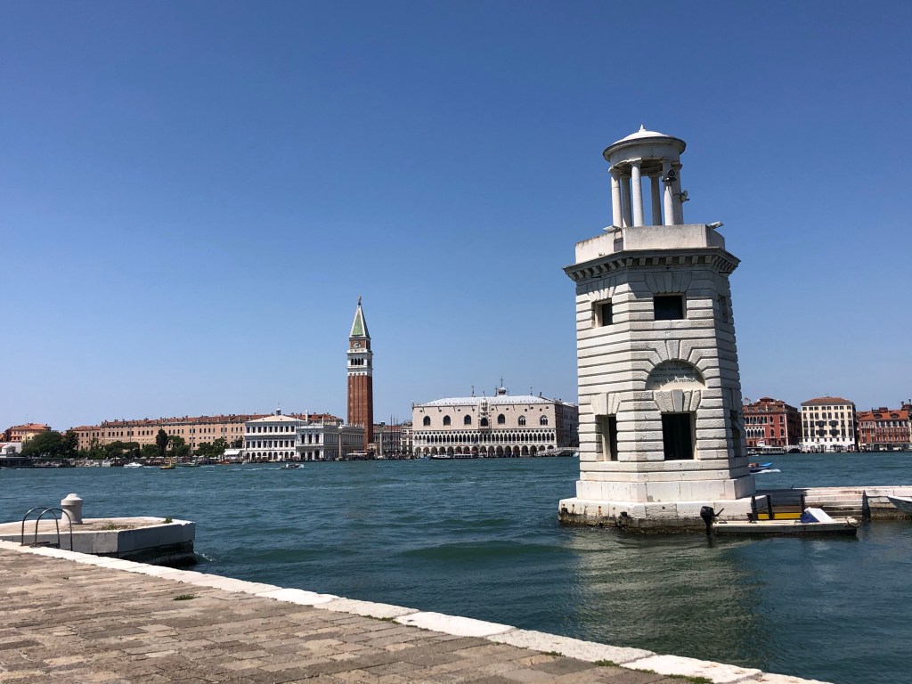 The island of San Giorgio Maggiore gazes back at St Mark’s Square with an unblinking eye. A magnificent white facade, designed by Palladio cloaks the elegant church of San Giorgio Maggiore. A bell tower that is similar to St Mark’s famous campanile mirrors the architecture of St Mark’s. A fitting reflection of the glory of Venice. The island was a monastic and religious centre for the Benedictine Monks for centuries.