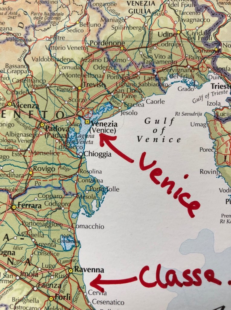 Venice to Ravenna on the old Roman road – read this article for more on the drive from Venice to Ravenna and the fabulous mosaics of Sant’ Apollinare in Classe. There’s also more on Popski here too.