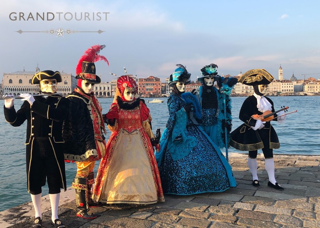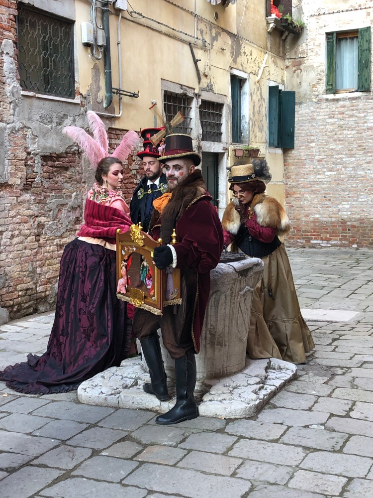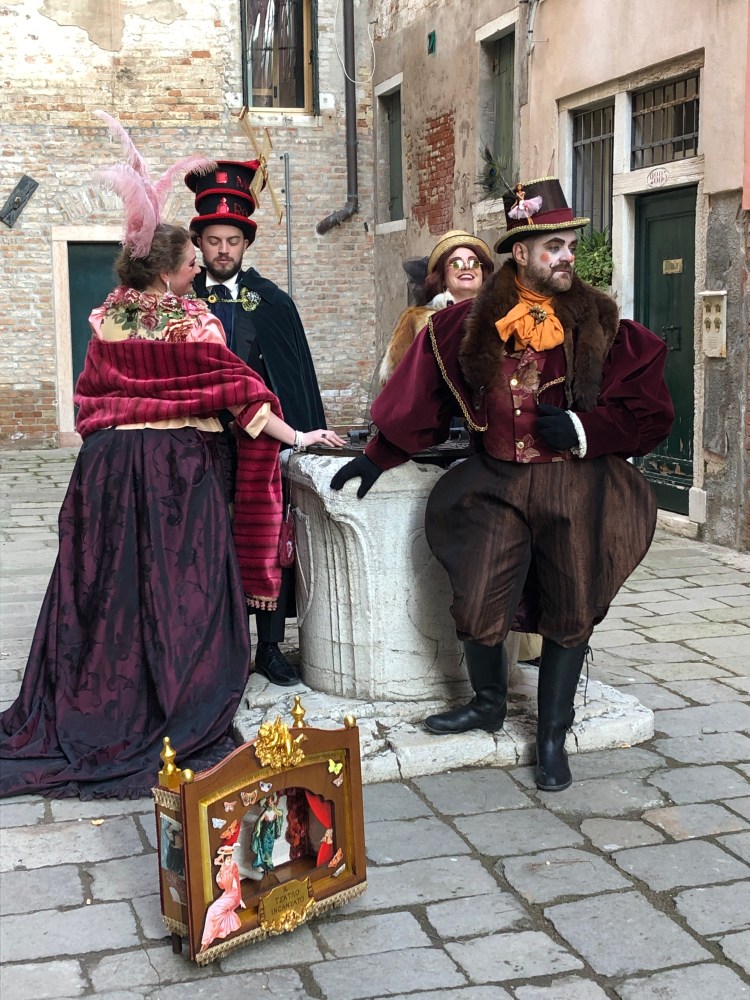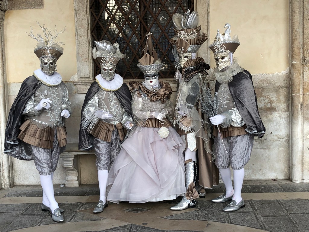 Exquisitely dressed musical ‘ensemble’ strike a pose! San Giorgio Maggiore, Venice – February, 2020