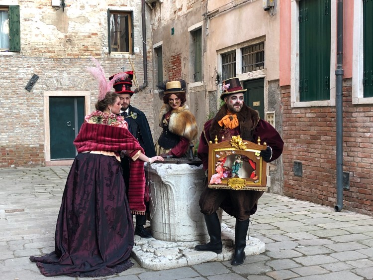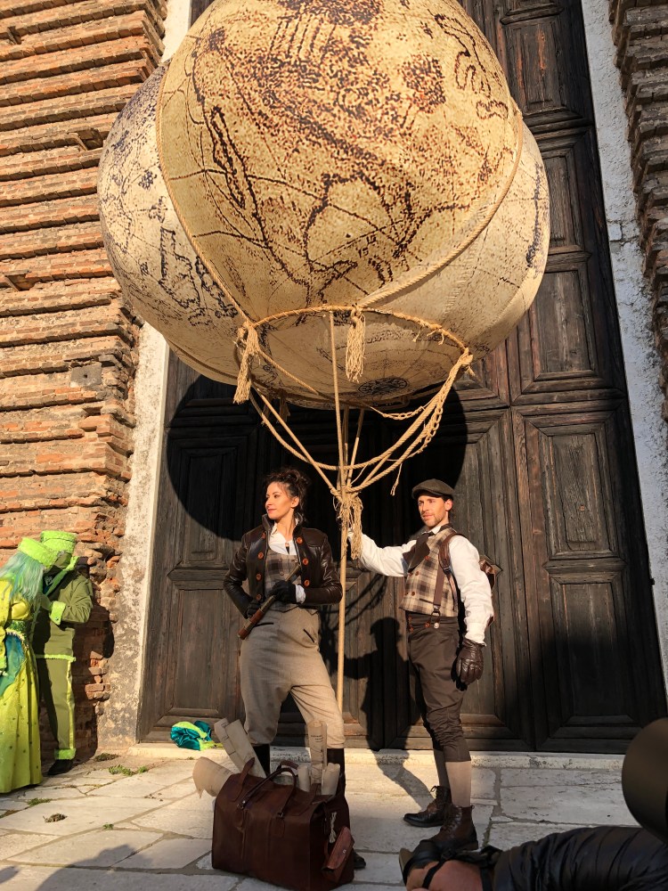 SENIGALLIA – My friend Lara Massi, who works in the Senigallia Tourist Office kindly introduced me to Anna and Lorenzo Marconi. I was able to meet and watch this incredible sister and brother in action. They were amazing. Professional, interesting and kind. It was a pleasure to witness them in one of their many photo sessions during their days in Venice. This year their theme was ‘Enchanted Theatre’. Lorenzo and Anna make every element of their costumes. The miniature theatre held by Lorenzo was made in their workshop in Senigallia. I quickly realised that the costumes, richly detailed and beautifully made as they are, are not the whole story. It’s also about getting into character and in Madonna’s famous words from the song ‘Striking a Pose’ and boy oh boy do these guys know how to strike a pose. It was such a joy to watch professionals in action.