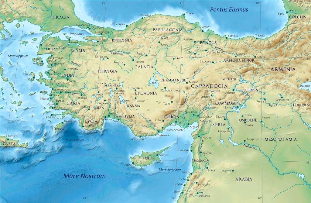 Lycia, Galatia, Byzantium and Chalcedon (Kalchedon) are marked on this map