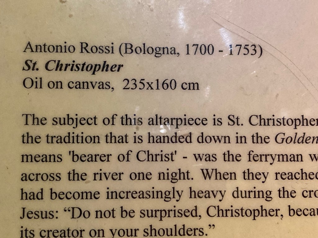 Additions: A new St Christopher painting – that I discovered in Ravenna a few months ago – it’s early 18th century. Once again good old St Christopher carries the weight of the world on his shoulders. Perfect symbolism.