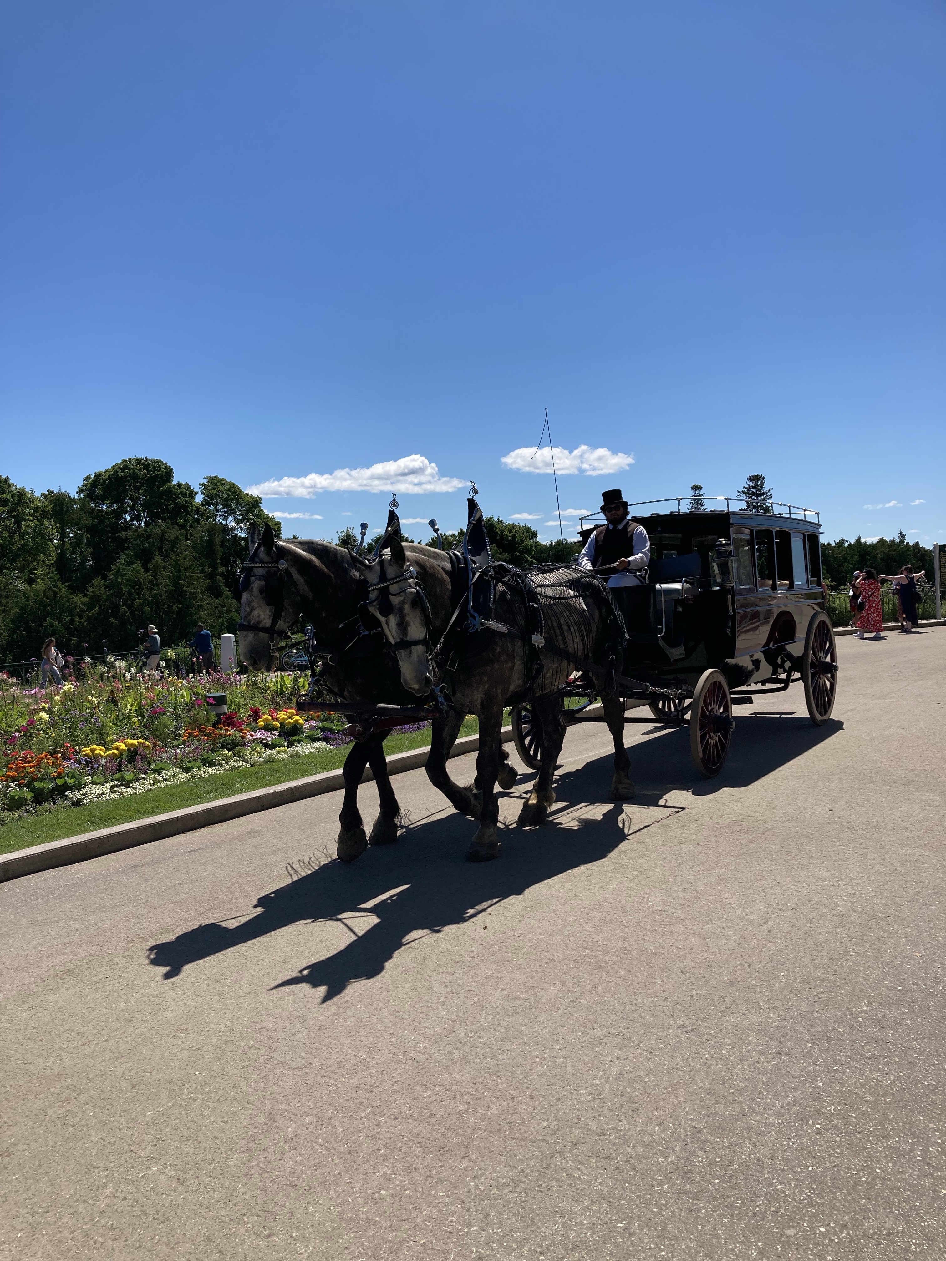 As we approached the harbour of Mackinac Island I noticed a pretty collection of houses, cottages and coloured buildings lining the waterfront. The white timber terrace of The Grand Hotel, a landmark on the island glistened in the morning light. Horses and carriages progressed up and down Main Street in a steady and stately fashion. There are no cars. Visitors get about on foot, by bicycle or in a horse-drawn carriage.