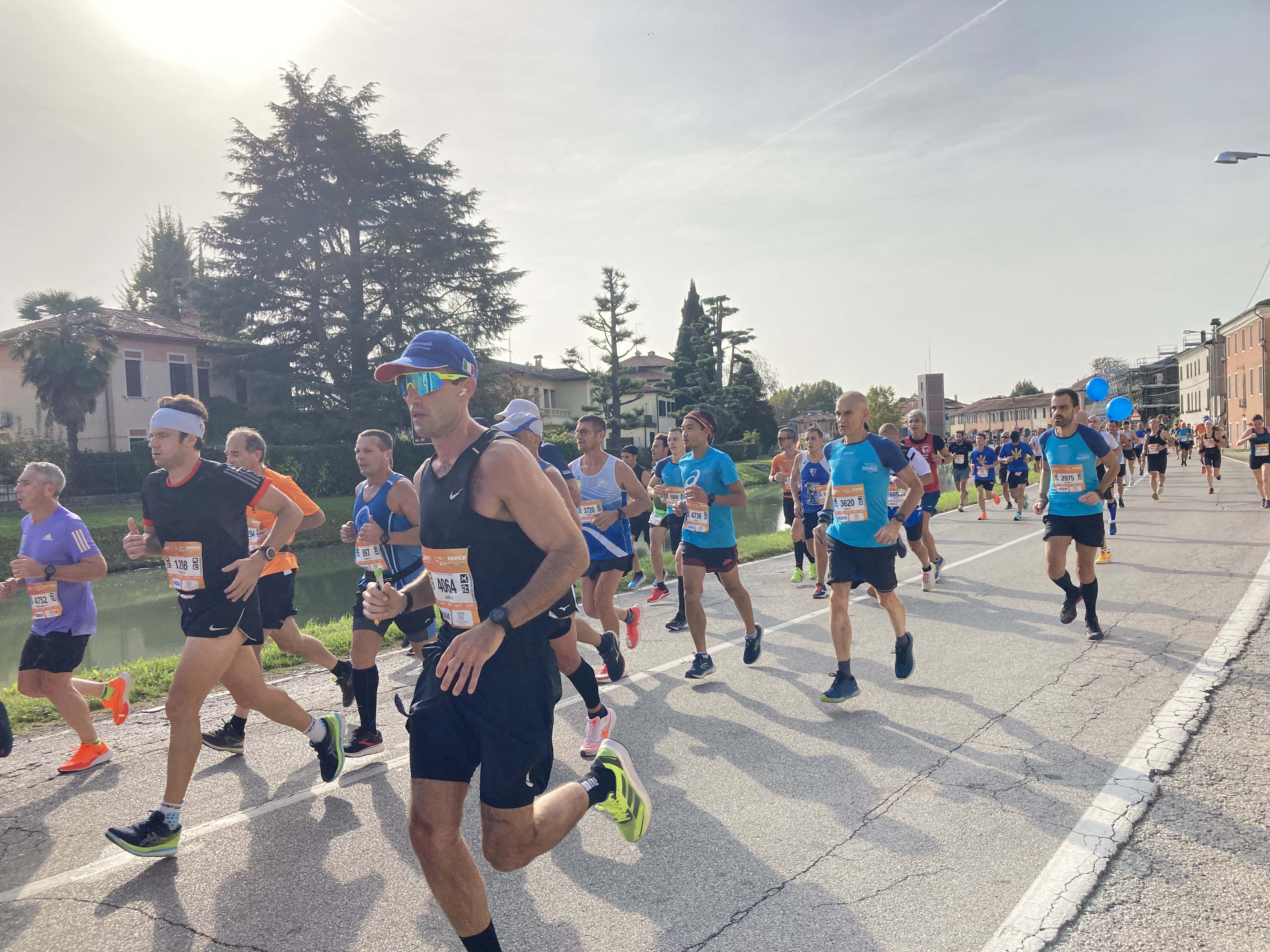 From Malcontenta the runners have to cover a rather nasty industrial area known as Marghera. This is the industrial part of Venice, developed in the 1930s by, you’ve guessed it, Mussolini and his henchmen. Here there are horrible petro-chemical plants (mostly disused), an oil refinery (in a state of ruin) and other nonsense that should never have been built on the shores of one of Europe’s biggest and most important wetland areas. Then the runners make it through to San Giuliano where there’s a newly created park, freshly surfaced, smooth roads and a feeling of urban renewal. Just a few kilometres on and they reach the causeway linking Venice with the mainland. The Causeway is 5 kilometres long and can be brutal on a cold and windy day. Marathon day, fortunately was calm and sunny, with very little wind.