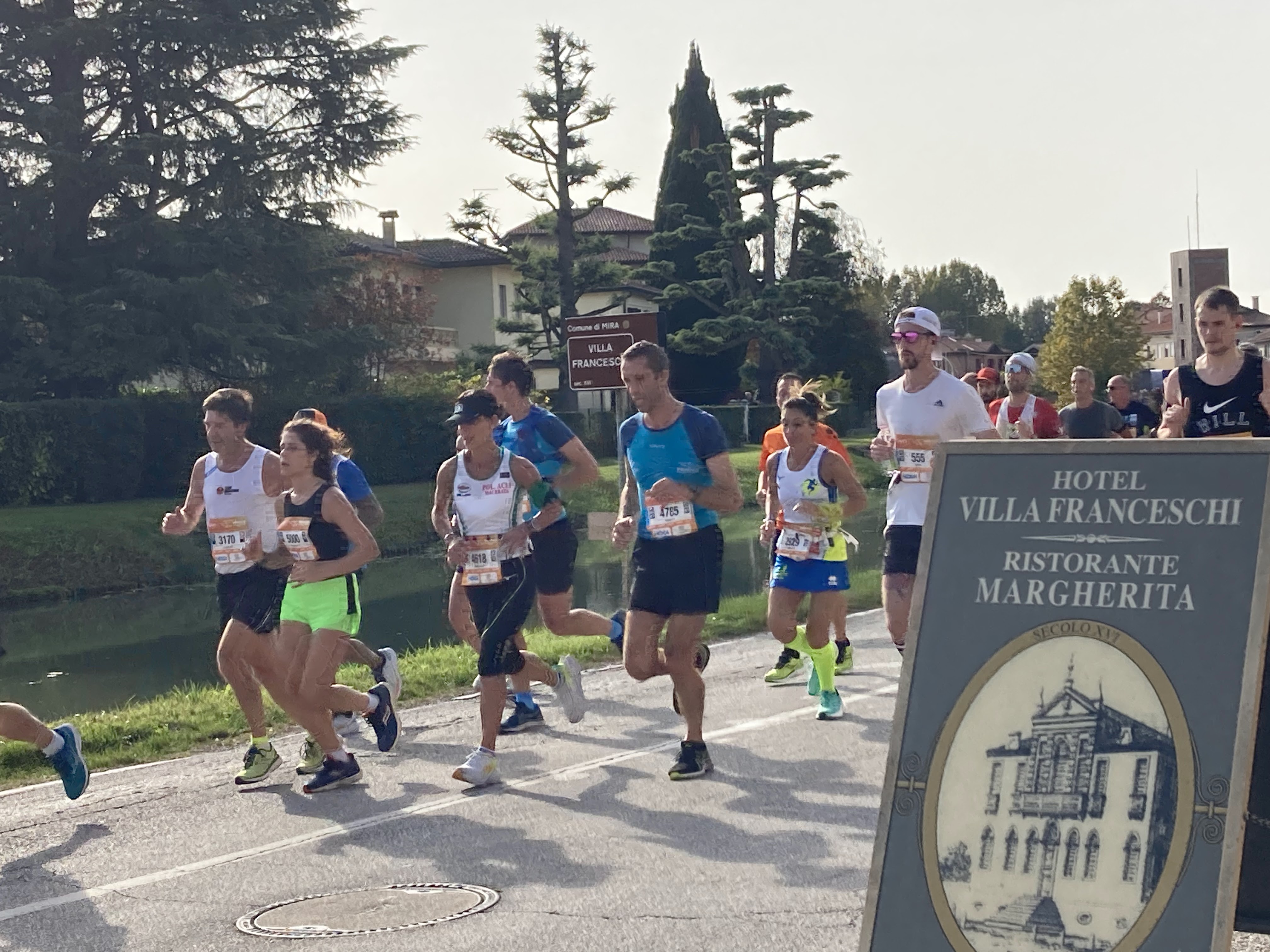 As the runners poured through the small town of Mira Porte and I observed them from the steps of my abandoned palace, I was struck by their determination, single-mindedness and bravery. Forty two kilometres is a long way, it’s not for the faint-hearted. It’s the distance from London to Windsor. The distance from Paris to Versailles or the distance from Monte Carlo to Cannes. It is a long way to run. The runners were all ages and every nationality, from professional athletes to club runners, all having a go. The running club of Treviso had several people in wheel chairs who they were pushing around the entire course – so impressive. Runners had balloons and costumes. One enterprising group even had funky music to keep them motivated. All running, running, running as best they could.