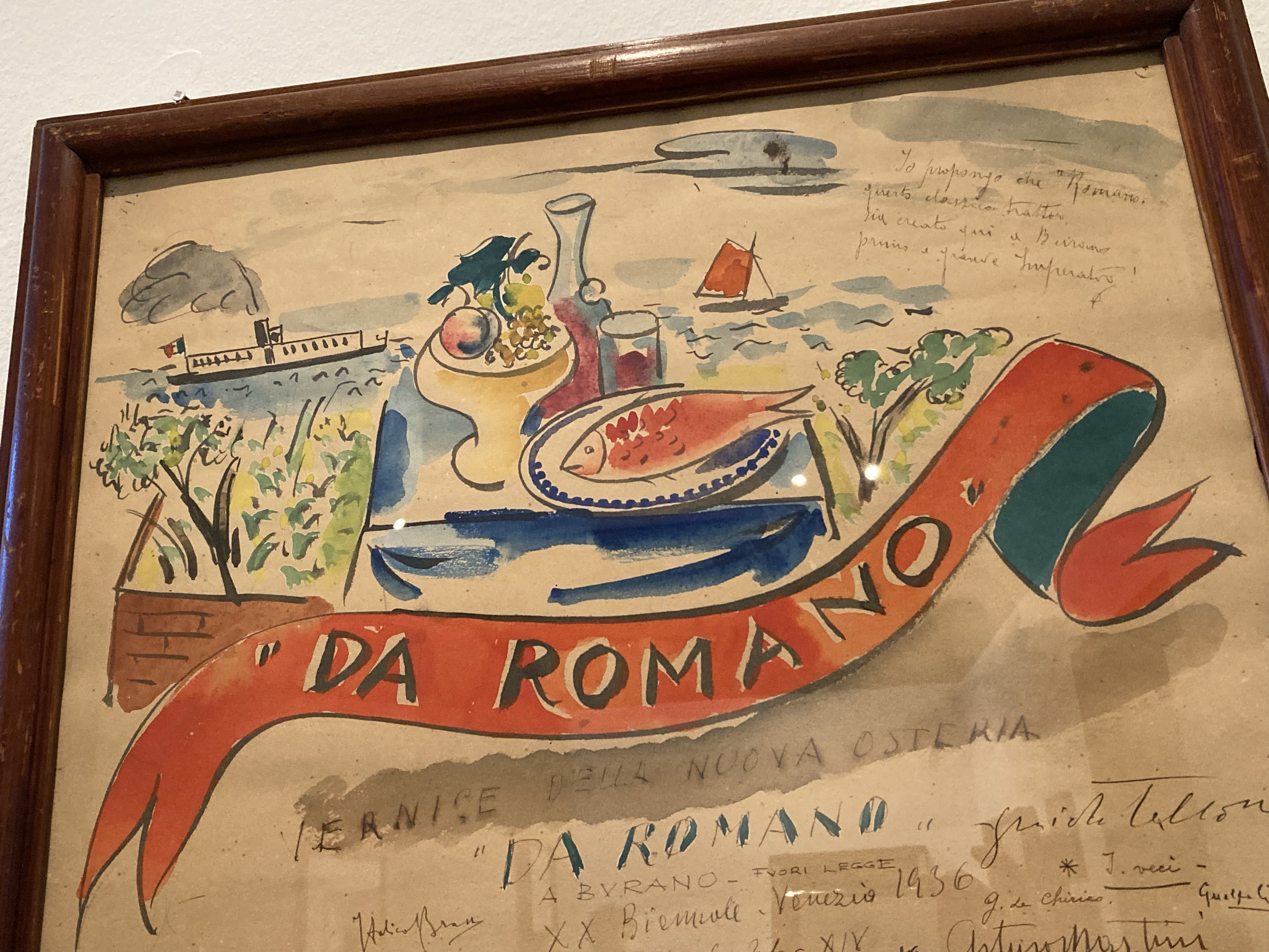 BURANO – Burano is the fishermen’s island of the Venetian Lagoon it is famous for its colourful houses and charming little shops. Definitely allow time for shopping. The lace shops are a delight selling hand embroidered tablecloths, napkins, hankies – all hand embroidered. On the main street is Da Romano, a fabulous traditional trattoria with original art covering the walls. My favourite. This restaurant is an institution – the same family have run this restaurant for three generations. Authentic and wonderful. The quality is always the same. I’ve written about Da Romano on several occasions. The Art of Da Romano