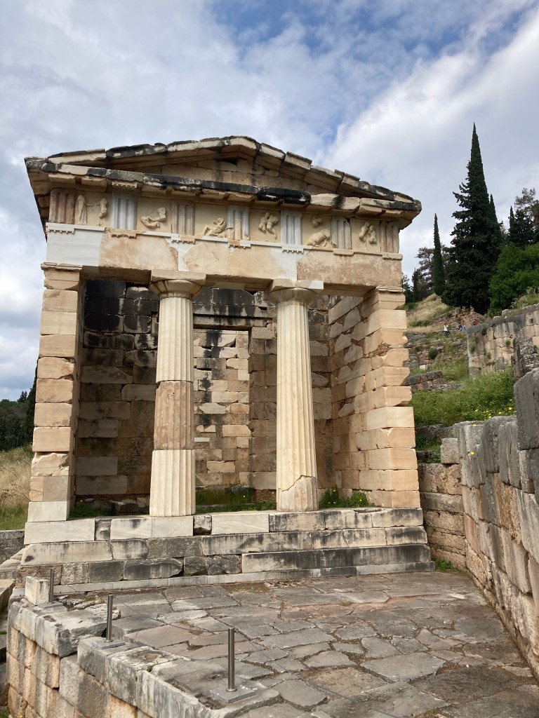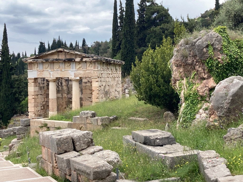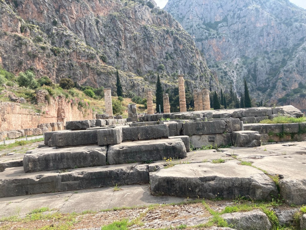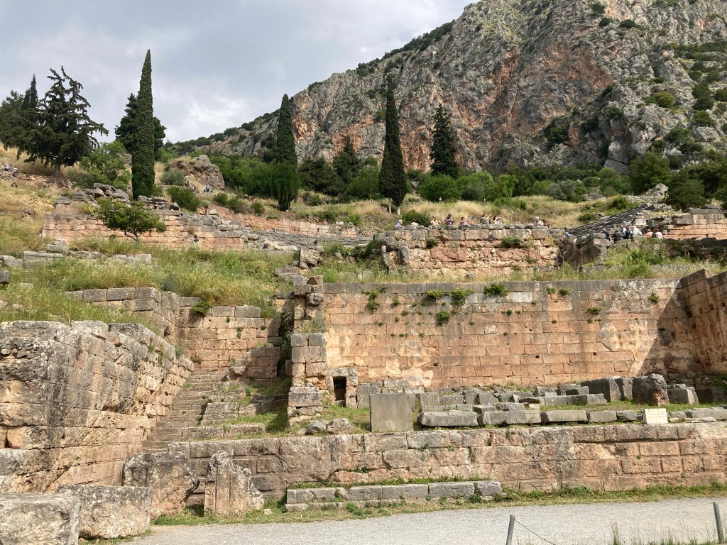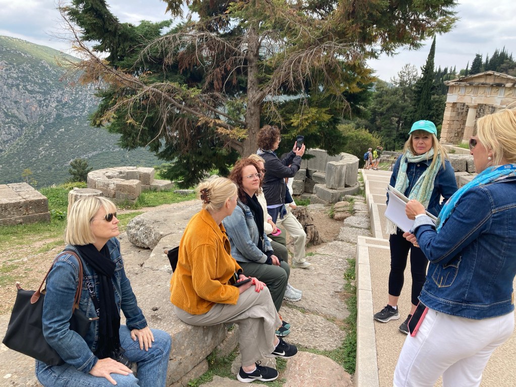 Then it was a luxurious little mini-coach (all leather upholstery), across the plains of Attica to the sacred site of Delphi. This was where the prophetess ‘The Oracle of Delphi’ lived. Here on the slopes of Mount Parnassus we visited the site of the very first Pythian Games (similar to the Olympic Games). It’s an amazing archaeological site on a hillside, a place of great importance to the Ancient Greeks. In the days of Classical Greece politicians, military commanders, kings and princesses came to Delphi to consult the oracle. To step on this ancient hillside is to step back in time.