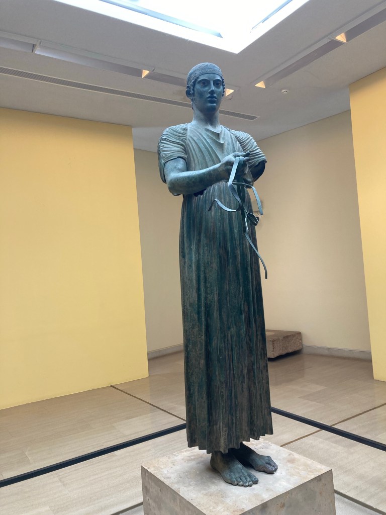 Travelling from Athens northwards through Greece, spending a couple of days on an island and then finishing up in Greece’s second city was a wonderful way to really discover the country and to take in some seriously impressive archaeological sites too. My favourite site was Delphi – just so impressive and to see The Charioteer in real life – just incredible. Below you can see a selection of Delphos gowns displayed in The Met, New York. The gown was inspired by the bronze statue of The Charioteer discovered at Delphi in the 1890s.
