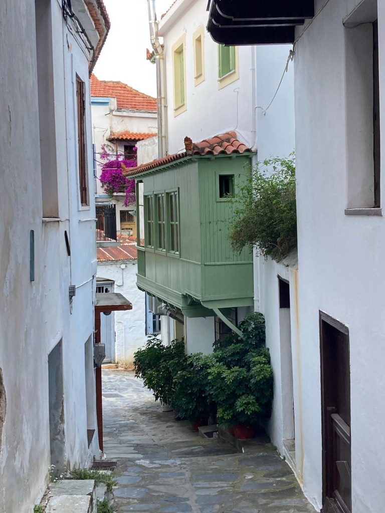 From Delphi we headed to the coast via the military site of Thermopyles. Here the Spartans bravely fought the Persians. Even though their king Leonidas lost his life here, the site remembers his courage and heroism. Next we arrived at Volos – a port town. Here we took the ferry to Skopelos, a typical Greek island for a few days of rest and relaxation. It was here on Skopelos and nearby Skiathos that ‘Mamma Mia’ the movie was filmed.