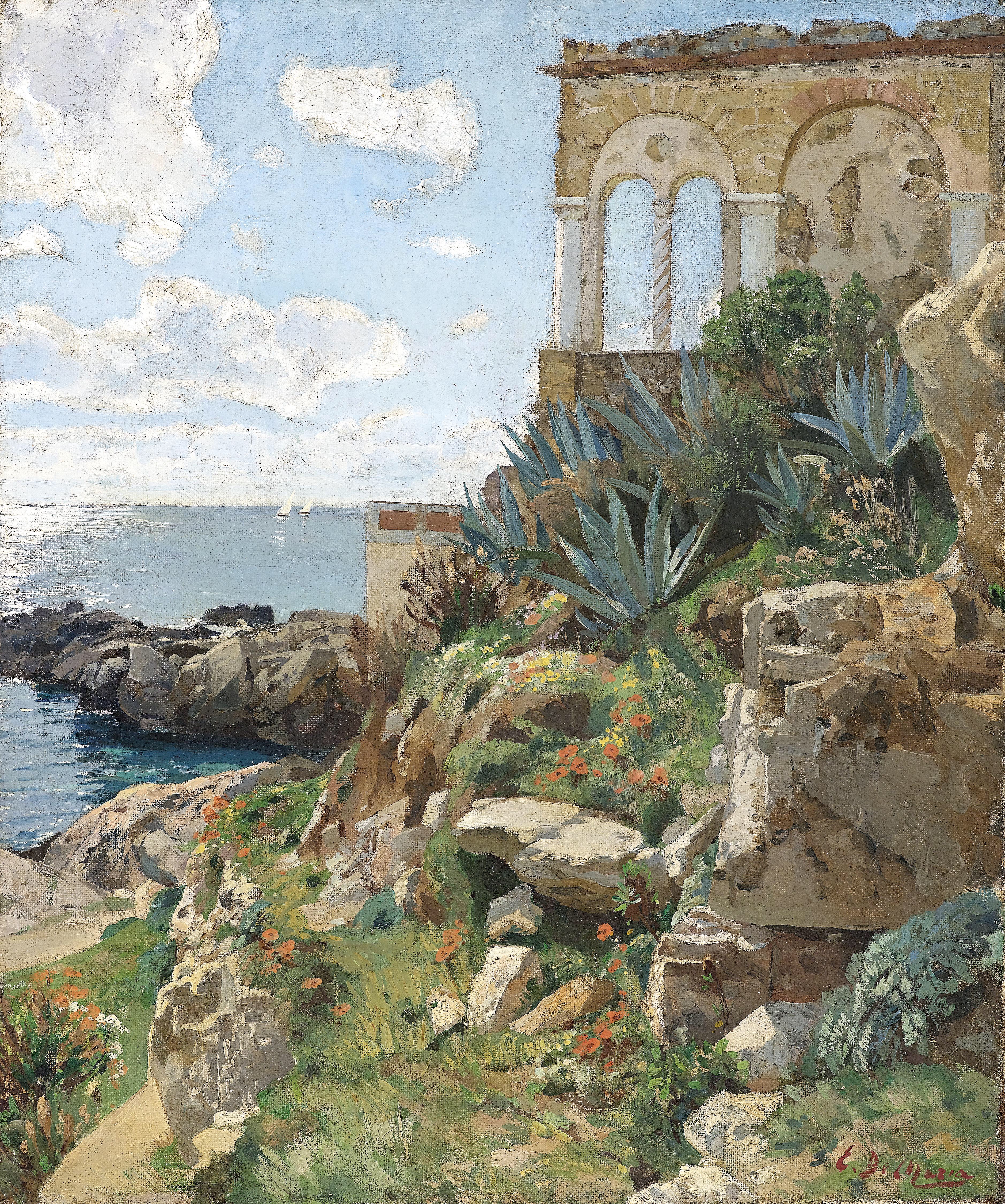 The colours of Sicily have influenced so many artists and designers. From Dolce & Gabbana (below left) to the Baroque architects of the 18th century (centre) and romantic artists like Ettore Maria Bergler who painted atmospheric scenes of Sicily and Southern Italy 1850-1938 (right).