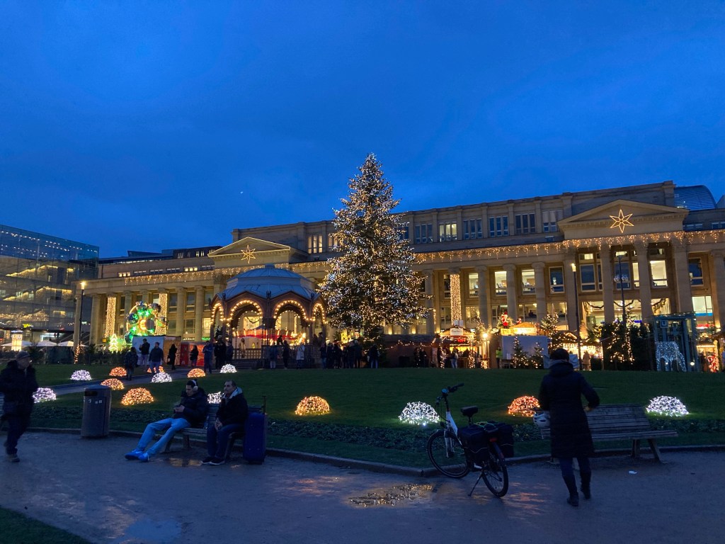 This year for the Stuttgart Christmas Market the city is celebrating it’s heritage – the beautifully decorated Schloss Platz (Castle Square) radiates seasonal cheer. It’s early December and the Christmas market season is in full swing. Everywhere you turn there’s a ‘gluewein’ stall and a slightly intimidating array of sparkling Christmas trinkets. The pavements are filled with families and friends, people strolling, shopping, chatting and drinking.