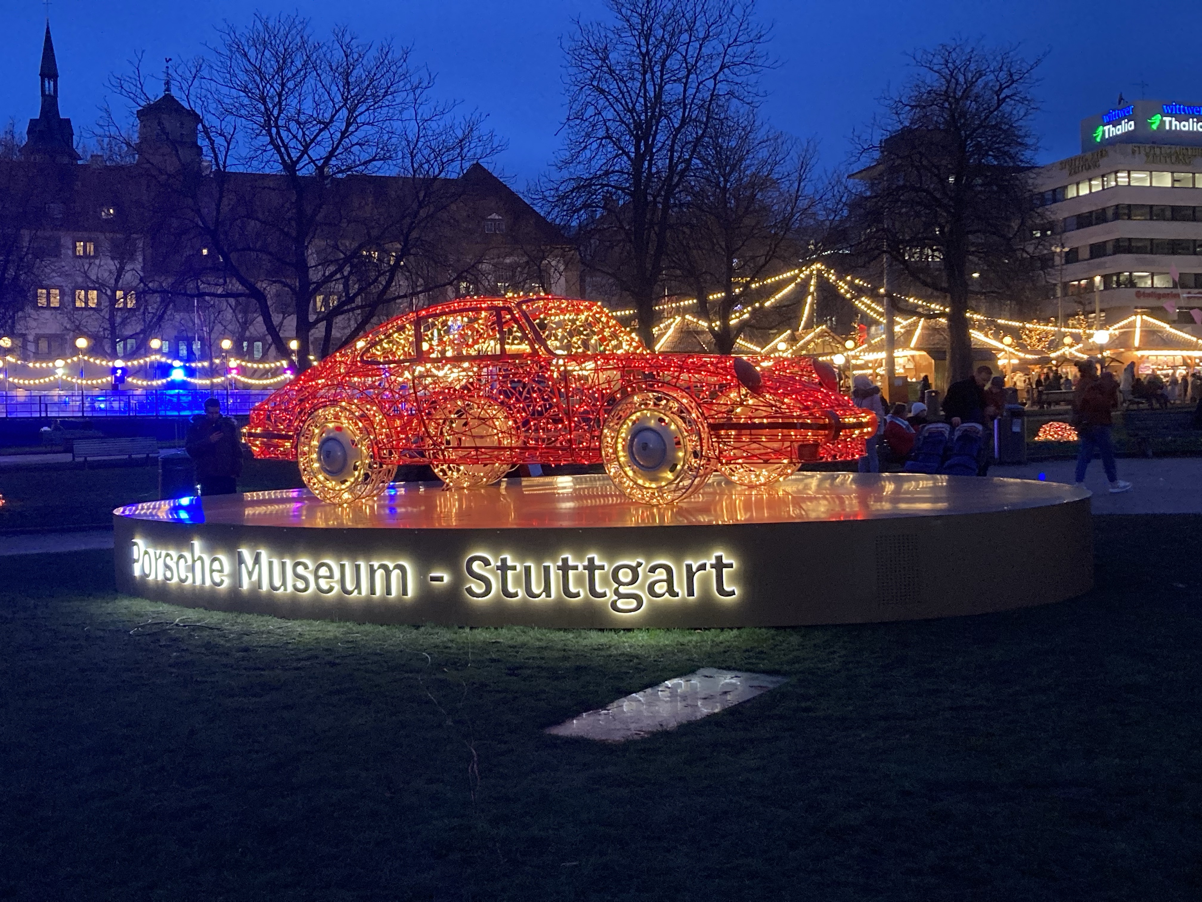 I’ve been wandering through the hustle and bustle of Stuttgart’s streets, where everyone works for Bosch, Mercedes or Porsche. I’m struck by the luminous brilliance of a Porsche 911 (early model of course) and a Gull Wing Mercedes, lit up by thousands of tiny lights. It’s a bit like Blackpool Illuminations, German style. In fact it is Germany’s Christmas Markets season and let’s face it Stuttgart is the city of automobiles. This is the home town of Carl Benz and Gottlieb Daimler. It was here in Stuttgart that Daimler discovered the combustion engine and where, in the 1920s, Ferdinand Porsche was invited to join the Daimler company as Technical Director.