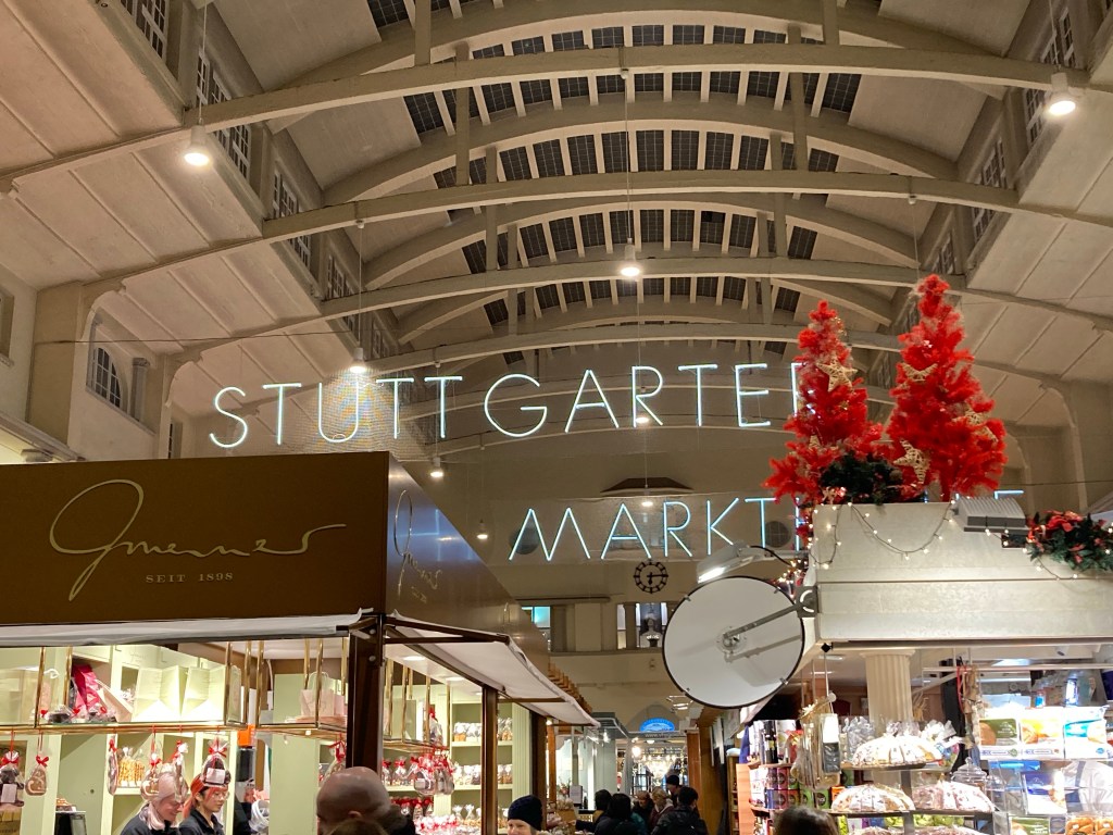 Stuttgart is not high up on the list of the average tourist’s ‘must visit’ list and yet it probably should be. The city has elegant squares, several theatres and a couple of huge arenas (sponsored by Porsche and Mercedes)…. It’s also got a fantastic covered market filled with stalls selling every kind of culinary delicacy. I just bought myself a huge piece of parmigiano – half the price and twice the quality of what we can buy in the UK.