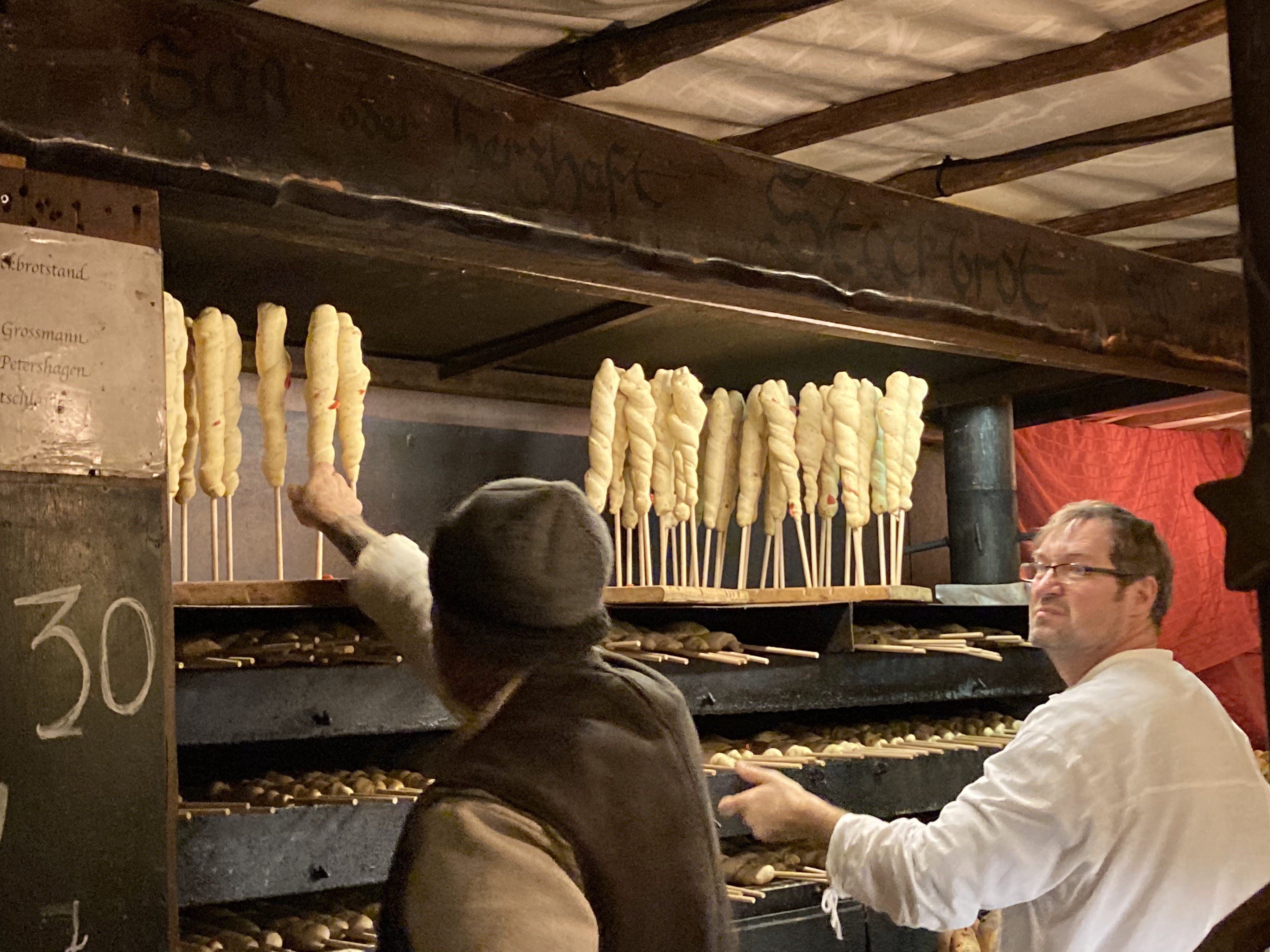 The next day we were back in a Christmas markets frame of mind. This time we took the train out of Stuttgart to the small town of Esslingen where a very special market with a medieval theme attracts visitors from all over Germany. Everything is authentic! Stall holders wear medieval costumes, there’s a fortune teller and a blacksmith, there’s even a knife sharpener. Local people have their kitchen knives sharpened here each year. For the children there’s archery, catapults and even small axes (quite sharp ones) that you throw at wooden targets.