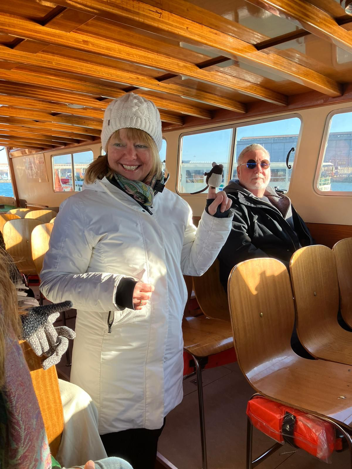 Venice – Grand Canal, Guggenheim, Salute – January, 2020 (left) – Mary Lou Peters (artist) right.
