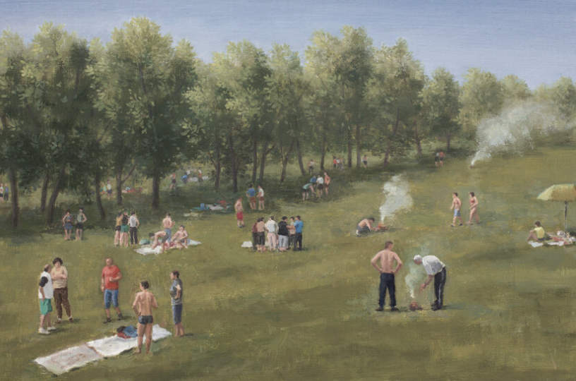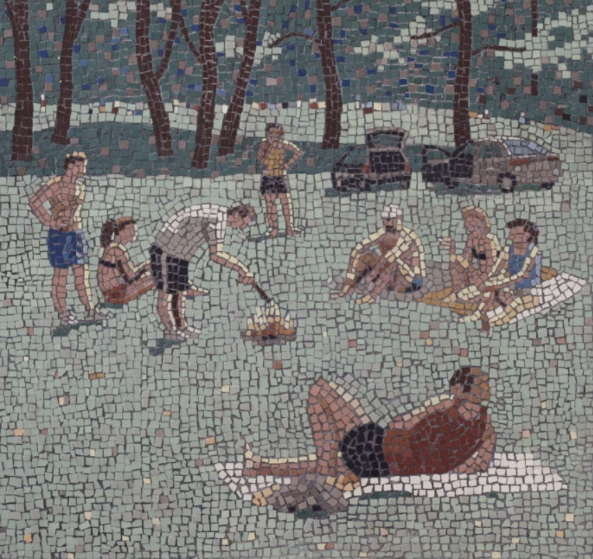 Romanian Pavilion (Giardini): A beautiful evocation of every day life, called ‘What work is’ by artist Șerban Savu, centred around the history and relationship of work and leisure. Curated by the artist Ciprian Mureșan. Carefully observed, modest and captivating. Below left – painting by Serban Savu. Below right – similar subject matter as a mosaic.