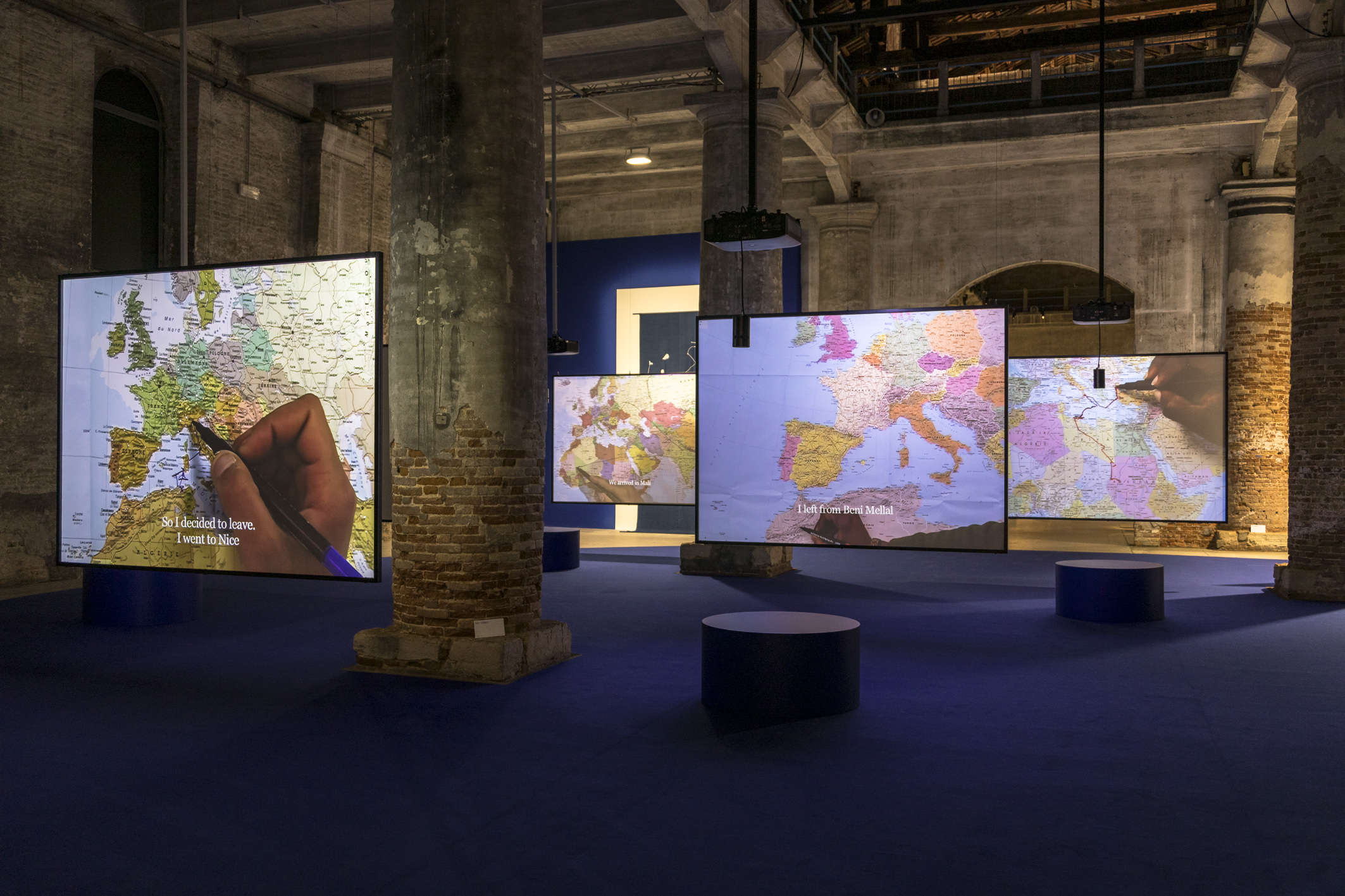 Migratory routes across the Mediterranean – Bouchra Khalili / Morocco – photo: Marco Zorzanello