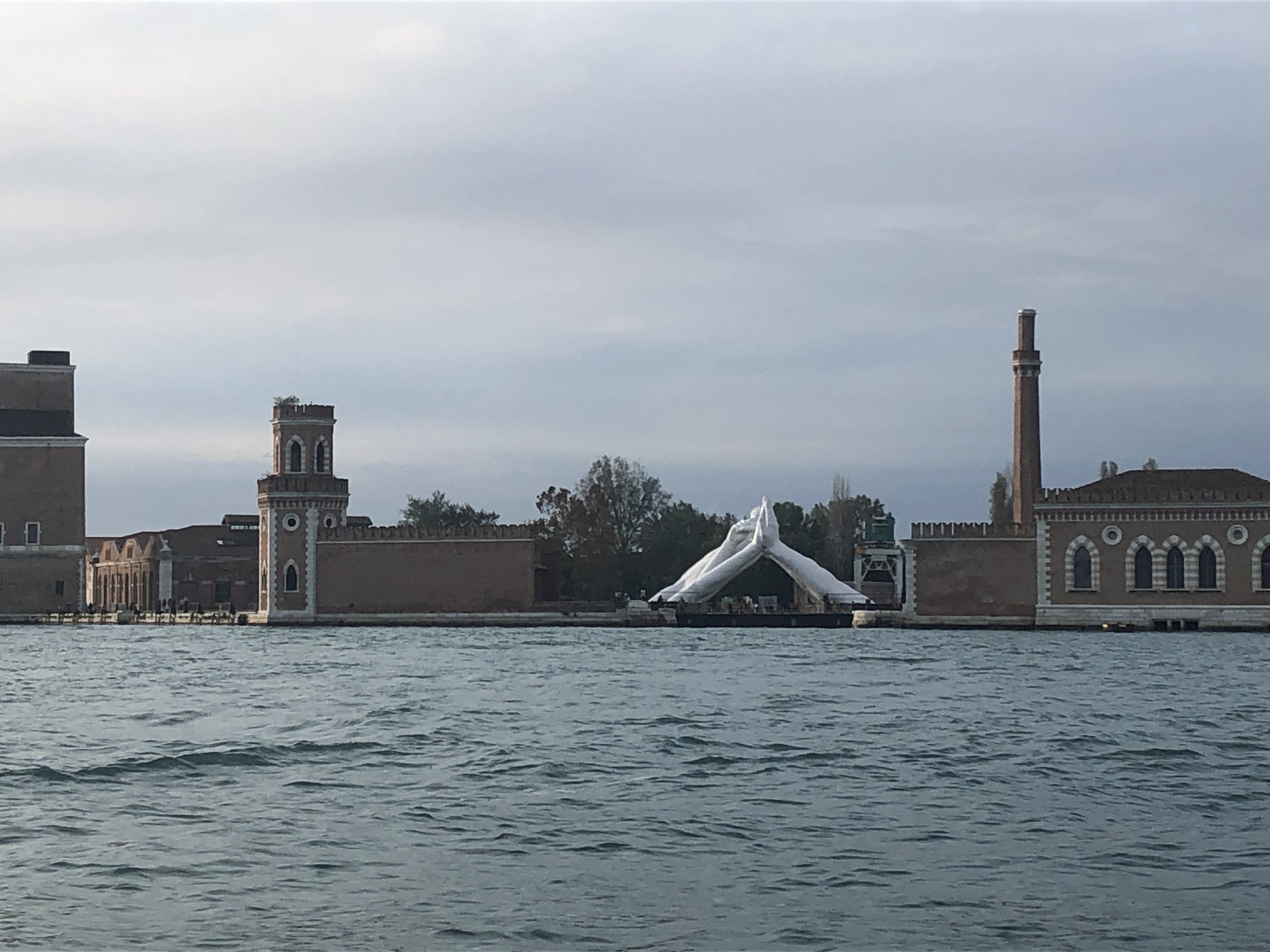 This is the third time that Quinn has exhibited a monumental work in Venice at the time of the Biennale. The first was in 2017, when he created ‘Support’ a ghostly set of two gleaming white hands, apparently holding up the wall of a Venetian Palace. The sculpture was an internet sensation, brilliantly located on the Grand Canal just between the Rialto Bridge and Piazzale Roma. This meant that every visitor to Venice boarding a vaporetto at the station or the car park, saw the sculpture and took a photo of it. They say that it was the most photographed exhibit in Venice in 2017. Certainly ‘Support’ was a huge talking point, partly because of its visibility, right on the Grand Canal and also because of its status outside ‘The Biennale’ framework. Lastly, and perhaps most importantly it was a huge success because of its message. ‘Support’ refers to the delicate relationship between Venice and the sea, a balance that endangers and protects Venice in equal and opposite measure. The sculpture was also very timely, just about 18 months later Venice was hit by the acqua alta of November 2019 when the flooding in Venice and the damage to property, piers, palaces and private homes was truly shocking.