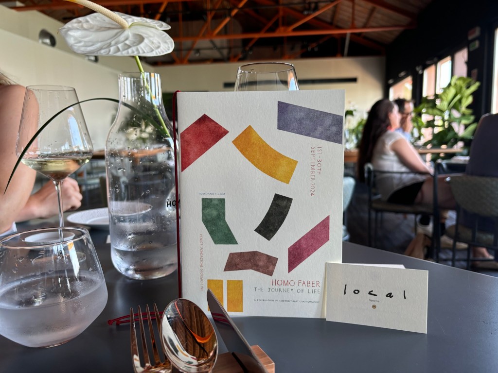 Venice is busy in these early days of September, the 81st film festival is in full swing on Lido. Meanwhile The Biennale continues until the end of November. Then to complete the hat trick Homo Faber opened on 1st September for a month.