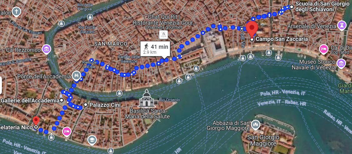 When you emerge from the Accademia it is just a five minute walk to the Zattere. Here you can enjoy wonderful views of the lagoon and Giudecca. Also the sunsets are spectacular. Enjoy an aperitivo or an ice cream at Nico’s Gelateria. Just divine. If you still have an appetite for art there’s actually a Botticelli just around the corner – seriously! That’s in Palazzo Cini (five minutes walk)! Perhaps that is for another day.