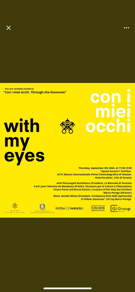 In early September there was a screening of ‘Con i miei occhi’ at the Venice Film Festival. A short film, in Venice, at the Film Festival. I was honoured to be invited and fortunate to attend. There was a lot of self-congratulatory chit-chat amongst the organisers; Biennale director, Vatican art and culture head, Governor of Veneto Prisons (all male). They discussed at length their collective virtues and their extraordinary perspective on the subjects of art and womens prisons.