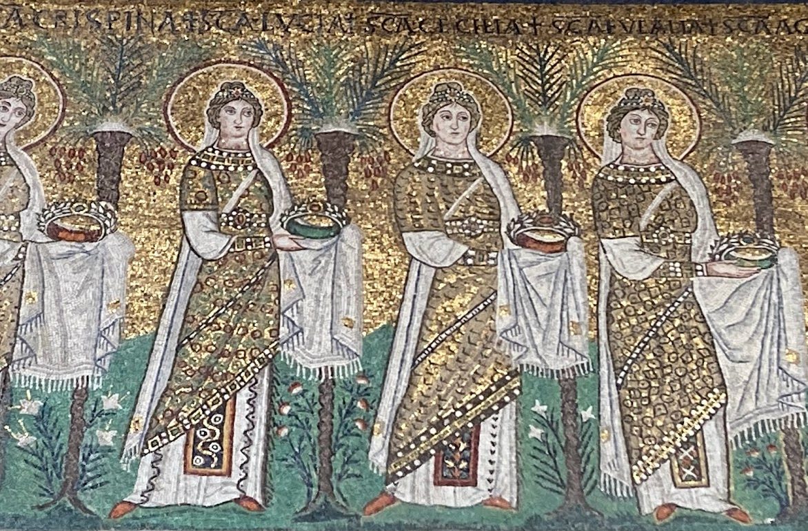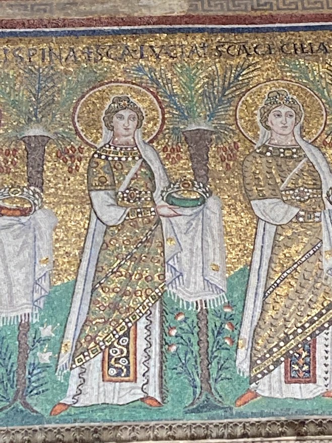Mosaic detail from Sant’Apollinare Nuovo, Ravenna – Lucy is second from left carrying a green crown