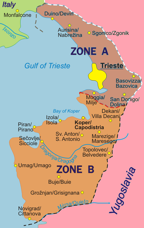 BORDER CITY – Trieste is a border city. The ‘confine’ as the Italians call it is the frontier or border which separates Italy from Slovenia to the south and east and Austria to the north. These borders have fluctuated and changed over the years. When borders change conflict is usually involved and this corner of Italy is no exception. The start of the First World War was triggered by the assassination of the Arch Duke Franz Ferdinand in Sarajevo in July 1914. By 1915 Italy entered the war and there was fierce fighting between the Italians and the Austrians in the mountains north of Trieste. There was huge loss of life. Conditions were dreadful in the freezing, snow-covered mountains of the Julian Alps. By the end of the war the old order had gone, the Austro-Hungarian Empire had collapsed and Italy ended up with the city of Trieste, the hinterland and the Istrian peninsula (now Croatia). However the region was still unsettled and in the 1940s there was war again. The Second World War was a very dark period for Trieste. Mussolini actually announced the Race Laws in the main square of Trieste, Piazza Unita. There is a plaque to remember this moment. Trieste also housed the only concentration campaign in Italy, a former rice-processing plant ‘La Risiera di Sabba’. Today it is a museum. Many Italian Jews were brought to Sabba before being transported, never to return, to the concentration camps of Auschwitz and Buchenwald. When the Second World War finally ended in 1945, Trieste’s neighbouring state Yugoslavia became a communist regime. After the war Italy could not hold on to Istria and the borders around Trieste were redrawn to exclude the Istrian Peninsula. The exodus of Italian families from Istria (which suddenly became Yugoslavia) is still a highly emotional issue in Trieste. Many people believe that the Allied Forces, especially Britain and America abandoned this corner of Italy. Certainly the British and New Zealand soldiers based at Duino Castle just up the coast had no respect for the aristocratic Count who owned the sprawling property that the troops had requisitioned. There’s an old photograph of the Count camped in the castle grounds in a small military tent and flying the Italian flag as a visual protest to his forced removal from the family home. To this day the family still live next door to the castle in an adjacent property.