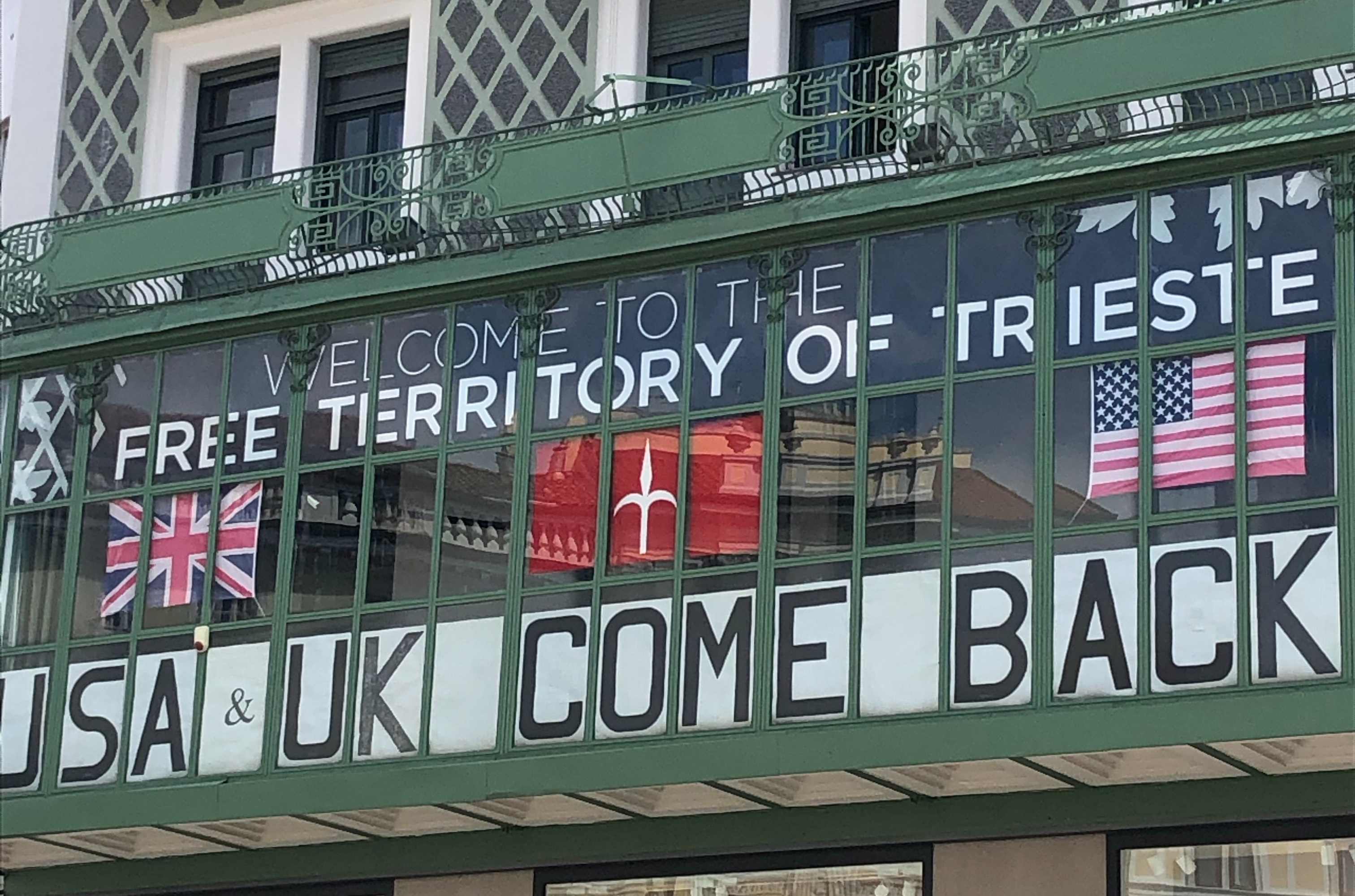 INDEPENDENT – Trieste is a dynamic and independent city with a thoroughly international outlook. As a city of merchants and traders it’s also a city of initiative. During the communist years especially in the 1970s and 80s there was a huge blue jeans market (denim jeans) in Ponte Rosso, a large market square in the city centre. People from neighbouring Yugoslavia would cross the border at the weekend to buy goods they couldn’t get on the other side of the border. Local people say that at least 100,000 pairs of jeans were sold every weekend in the Ponte Rosso Jeans Market. Even now at weekends the streets of Trieste are filled with shoppers from Croatia and Slovenia. The pedestrianised streets, numerous shops and elegant piazzas are a magnet for tourists, locals and neighbouring nationals alike. As you can see in the photograph below the Triestini remains fiercely independent and are ready to welcome the UK and USA back to Trieste, as soon as possible!