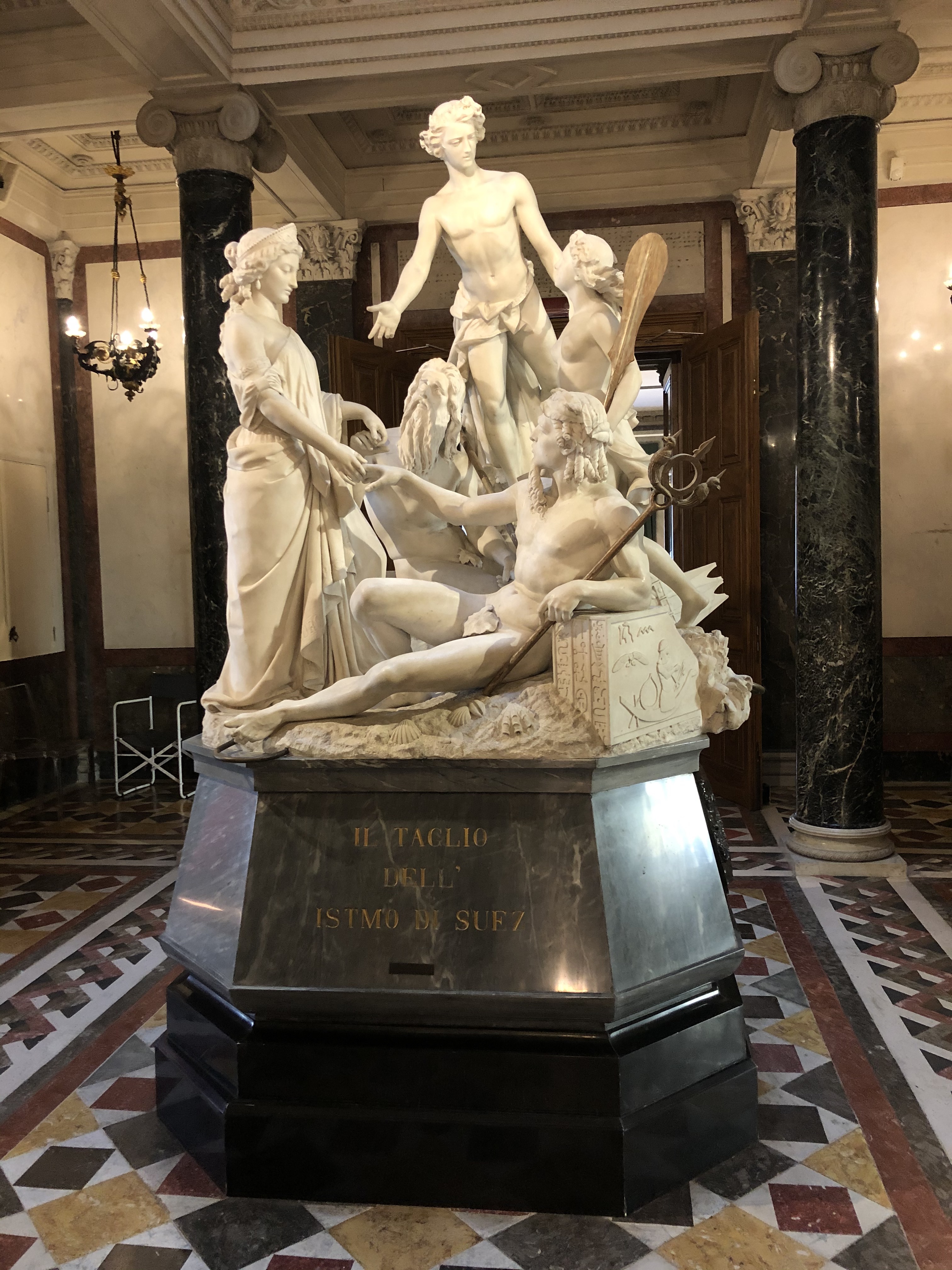 SPECULATION – On the subject of speculation Trieste was a city built on trade. In Roman times it was trade between the Alps and Adriatic Sea, later trade developed between the Austro-Hungarian Empire and the rest of Europe, especially trade with neighbouring Balkan states, Greece and the East. In the 1850s many of the city’s wealthy merchants became involved in a plan to build the Suez Canal. A huge infrastructure project that would create a short cut for ships, enabling them to sail from the Mediterranean directly to the Red Sea and into the Indian Ocean without having to sail around the entire continent of Africa and the notoriously rough seas of Cape Horn. A famous city character called Pasquale Revoltella, who had built an important business as a timber merchant and grain dealer was given the title of Vice President of the company established to build the Suez Canal – Compagnia universale del Canale di Suez unfortunately Revoltella died before the canal was completed. However its impact on trade between Europe and the Far East is still significant to this day. Only weeks ago the canal was blocked by a giant container ship threatening the movement of goods between Europe and Asia. When Revoltella died he left his home and art collection to the city of Trieste. The Revoltella Museum is now one of the most interesting museums to visit in Trieste, a luxurious private home, filled with the paintings, books and furniture of a wealthy man.