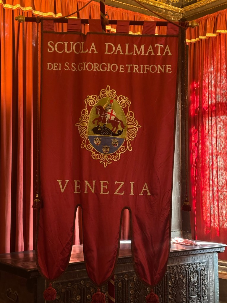 The Carpaccio paintings can be seen on the walls of Scuola Dalmata dei SS Giorgio e Trifone – often referred to as Scuola San Giorgio. The scuola is close to the church of San Giorgio dei Greci and about 10 minutes walk from Riva Schiavoni.