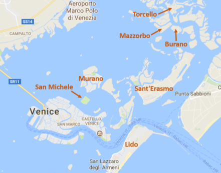 The lagoon of Venice – 1932 map with Torcello and Burano islands far right. www.educated-traveller.com
