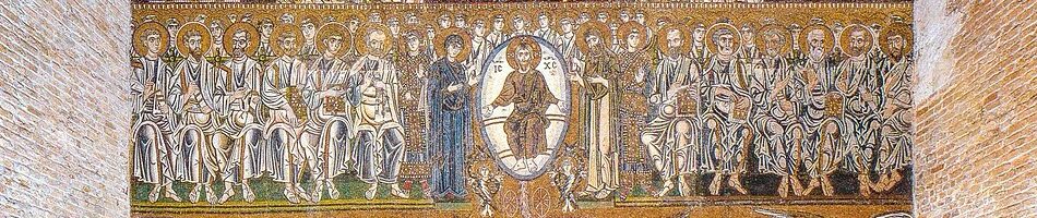 As with all good stories lets start at the beginning. In this case that means at the top – at the point where the mosaic wall nudges the timber-lined ceiling of the basilica. The mosaic can easily be divided into six registers or levels. So we’ll start at the top with the first register.